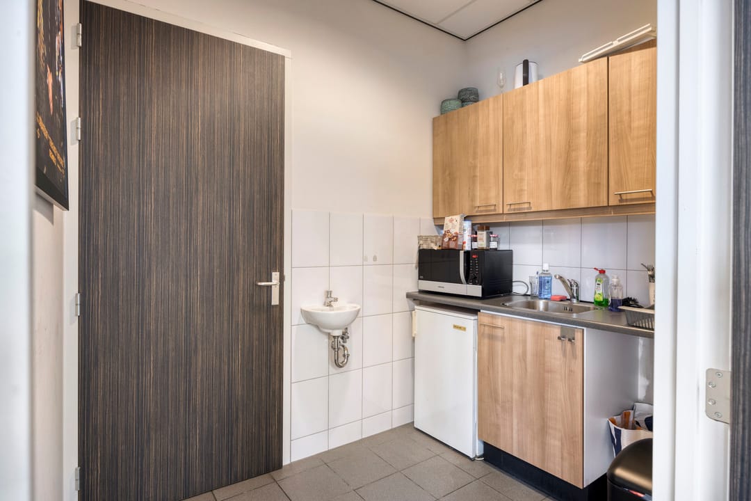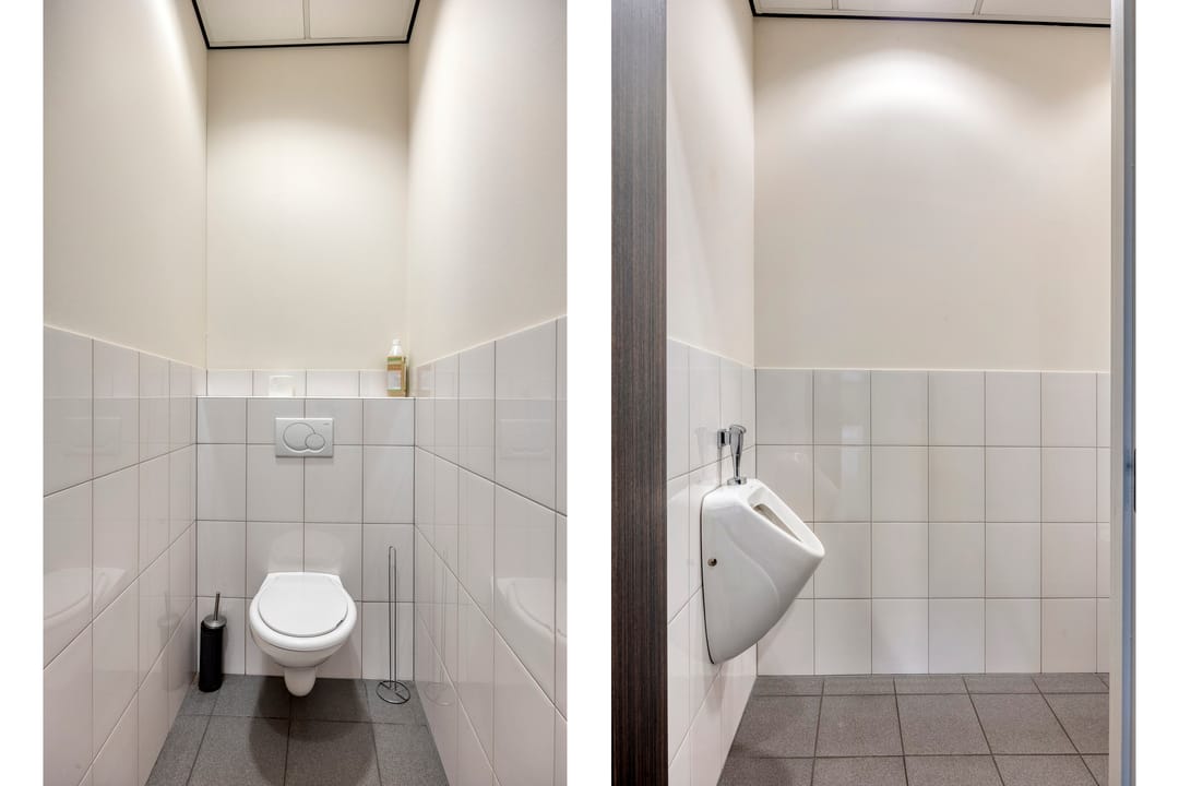 Aanvullend beschikt de ruimte over een eigen pantry met keukenblok en fonteintje, een separate toiletruimte met dames- en herentoilet en een praktische berging. Het geheel is voorzien van moderne faciliteiten zoals airconditioning, mechanische ventilatie, glasvezelaansluiting en zonwering, wat zorgt voor optimaal comfort en gebruiksgemak.