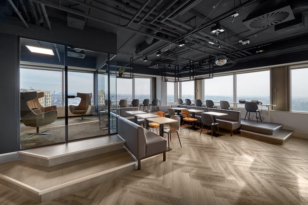 - Mechanical ventilation, peak cooling, built-in fittings, elevators, windows can be opened, cable ducts, modular ceiling, toilet, pantry, heating and room layout
