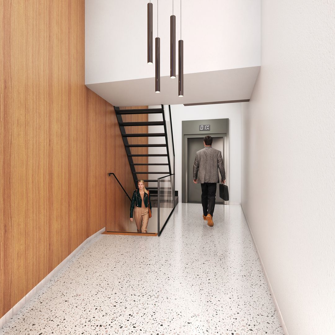 - Mechanical ventilation, peak cooling, built-in fittings, elevators, cable ducts, modular ceiling, toilet, pantry and heating