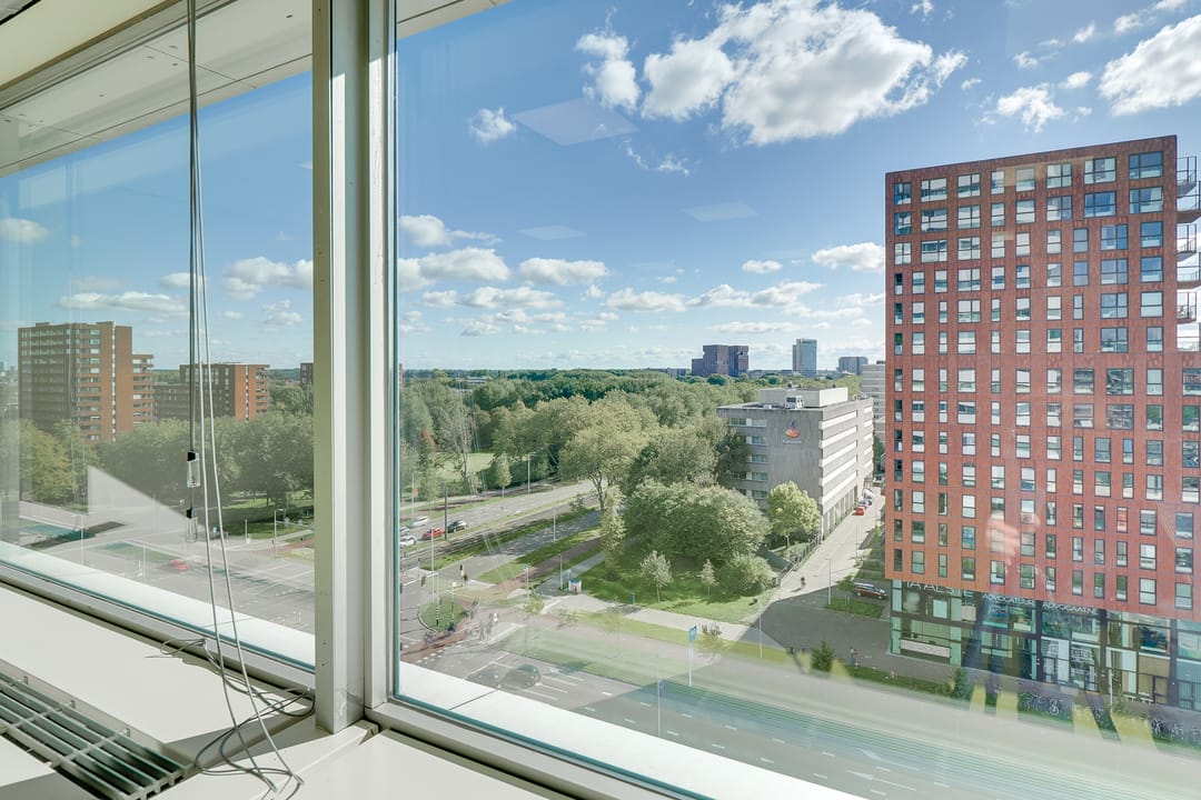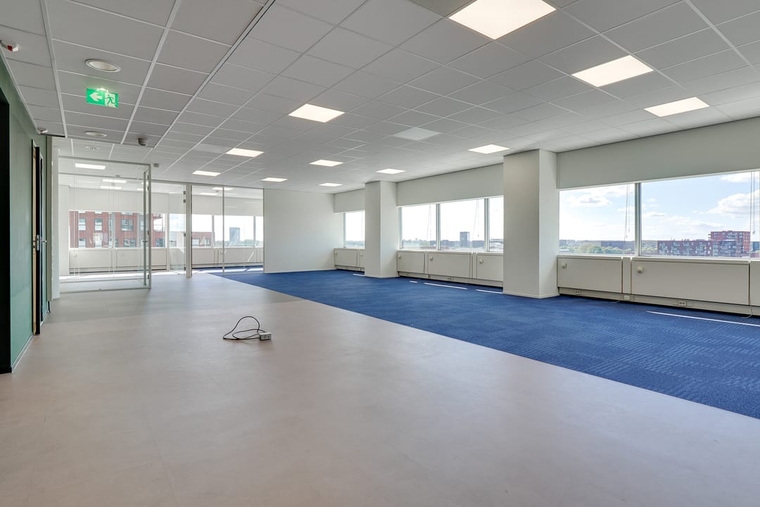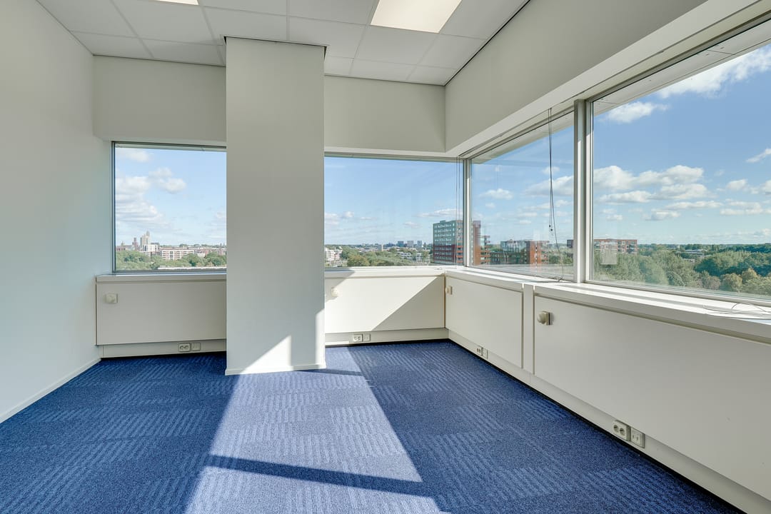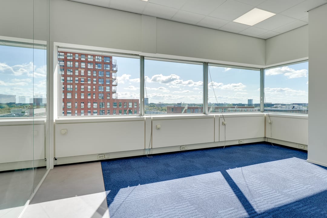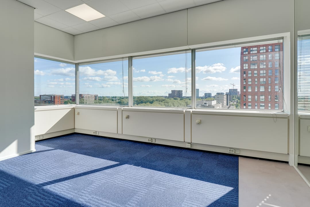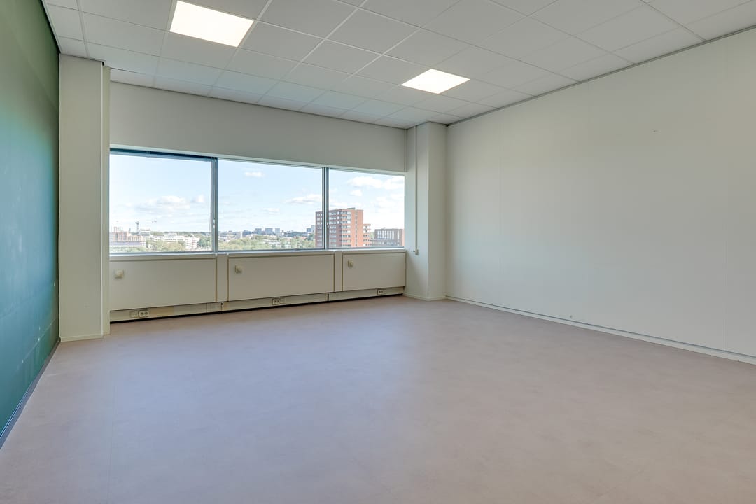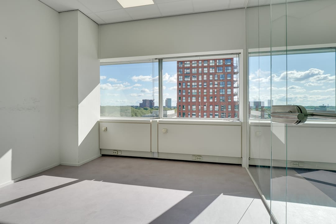 Voor de verhuur komt een zelfstandige unit op de 8e verdieping beschikbaar. Het betreft een turn-key kantoorruimte met diverse kamers en vergaderruimtes van circa 485 m² VVO inclusief toebedeling algemene ruimte. Vanaf de hele verdieping is er een panoramisch uitzicht op de omgeving.