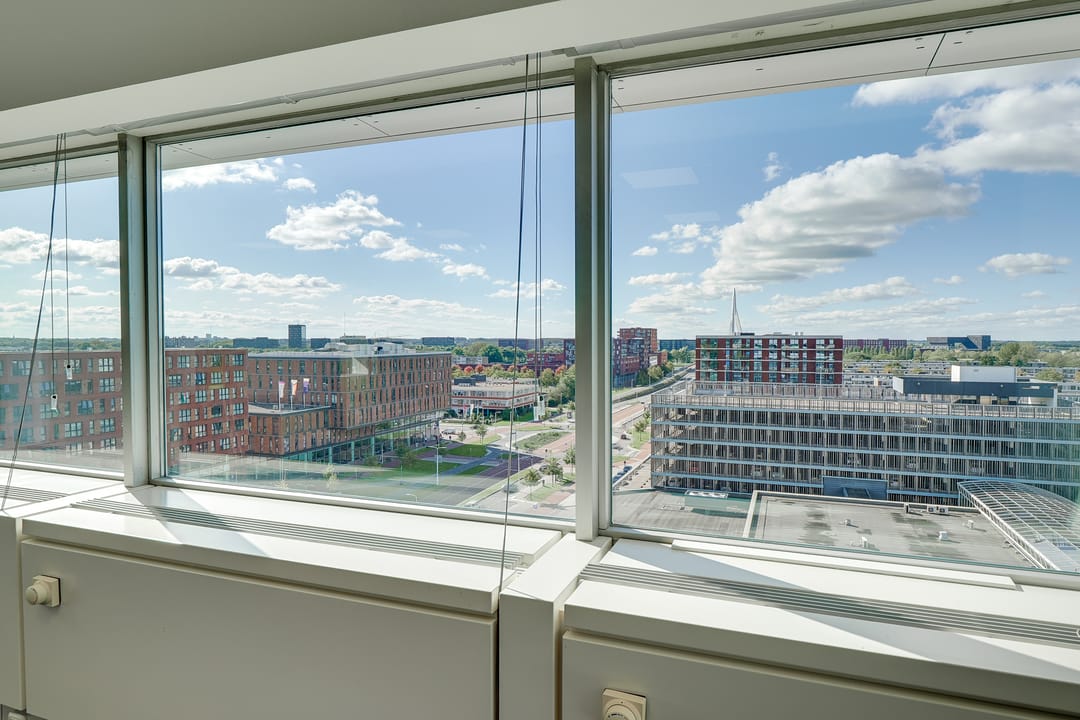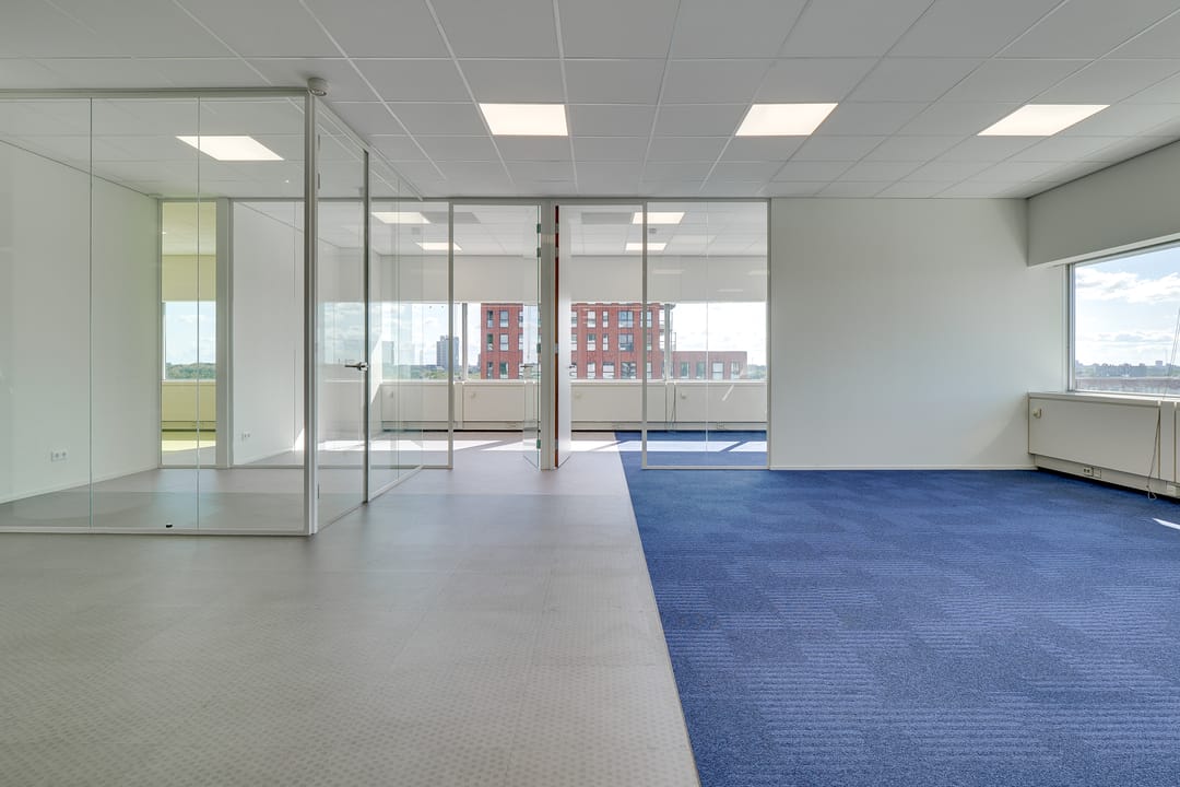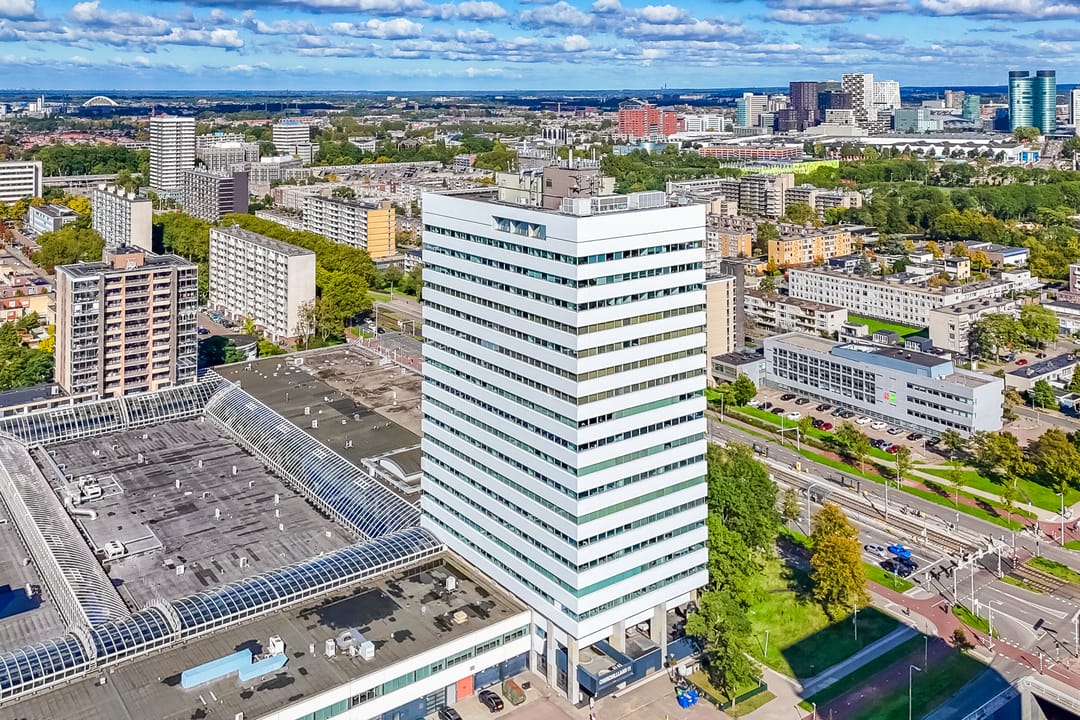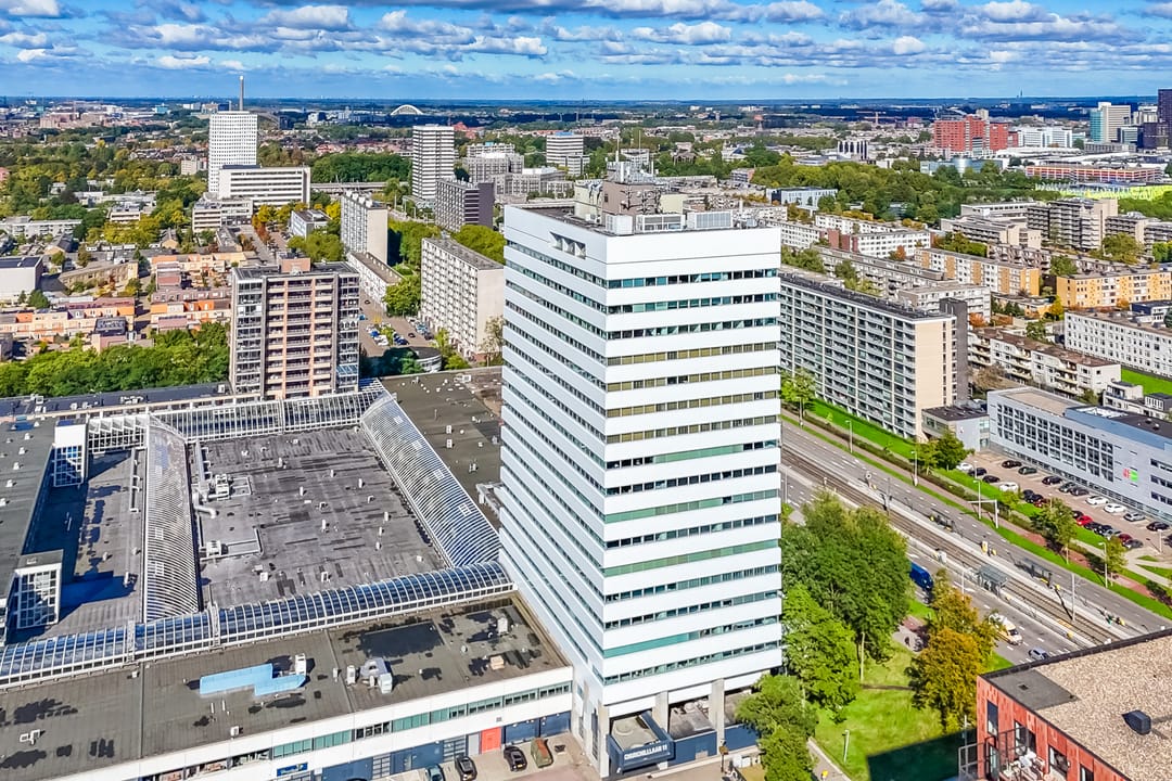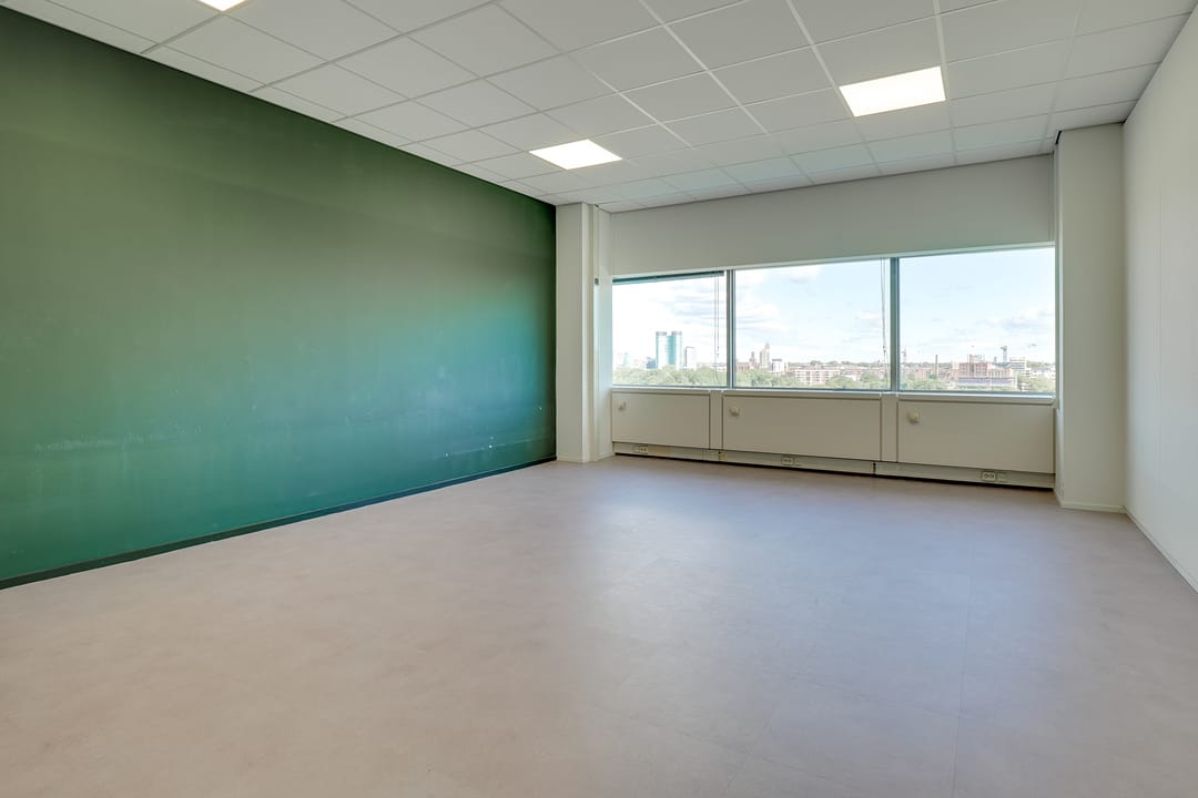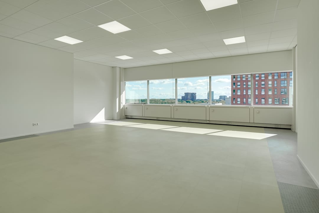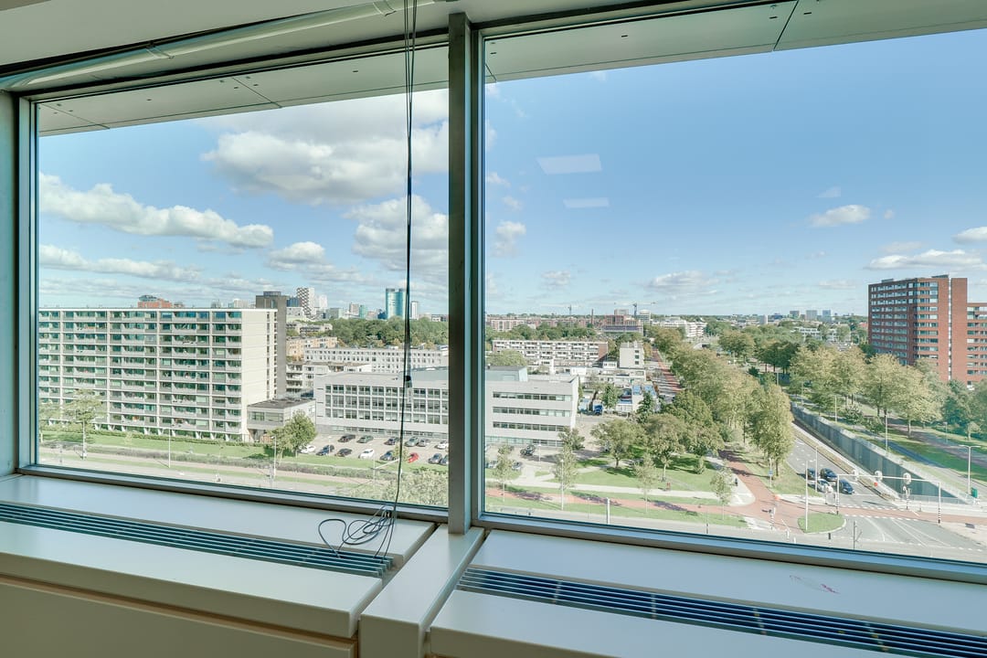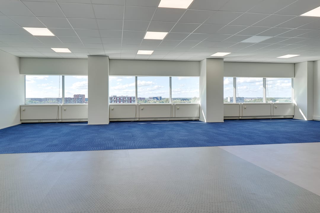 Voor de verhuur komt een zelfstandige unit op de 8e verdieping beschikbaar. Het betreft een turn-key kantoorruimte met diverse kamers en vergaderruimtes van circa 485 m² VVO inclusief toebedeling algemene ruimte. Vanaf de hele verdieping is er een panoramisch uitzicht op de omgeving.