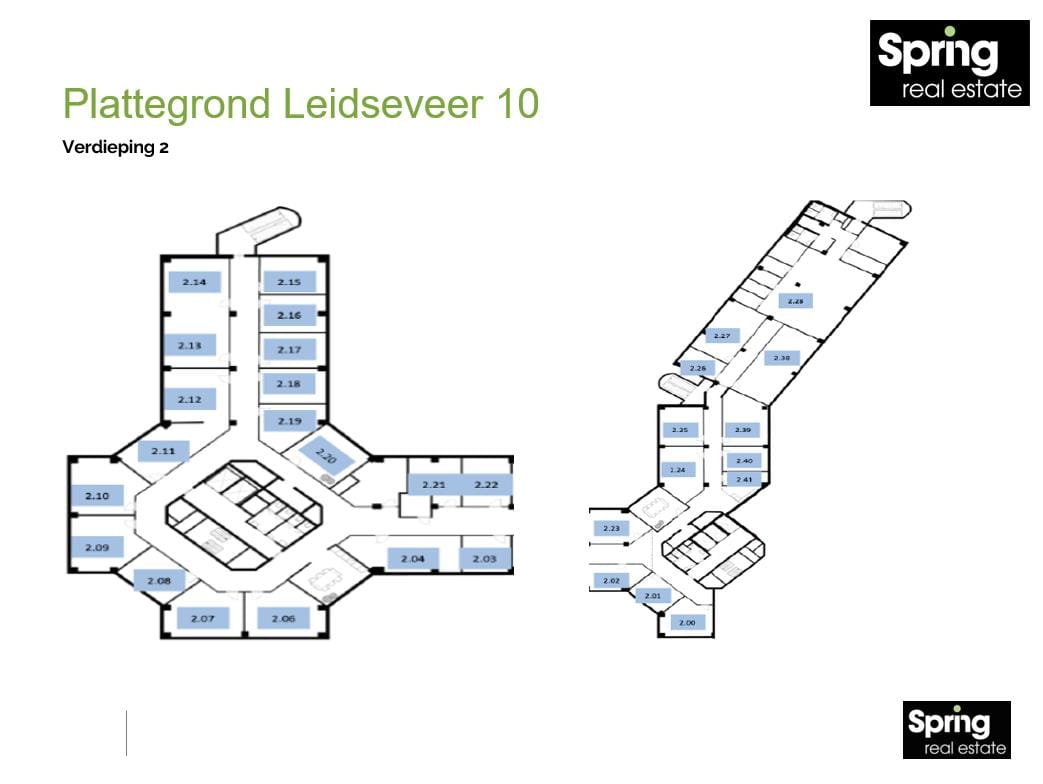 Op de 2e etage zijn de volgende kantoorruimtes beschikbaar: