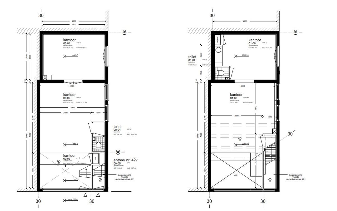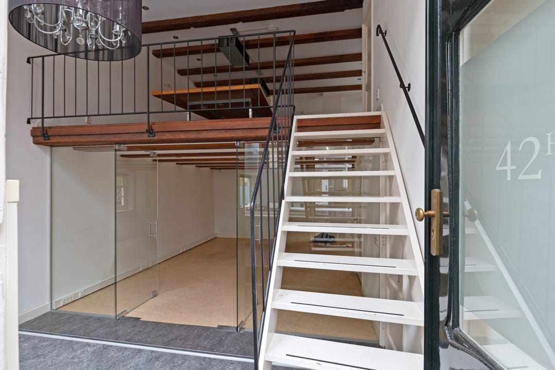 Dit karakteristieke bedrijfspand aan de Tweede Laurierdwarsstraat 42 is uitgevoerd in een praktisch en speels splitlevel-ontwerp, wat zorgt voor een open en dynamische indeling.