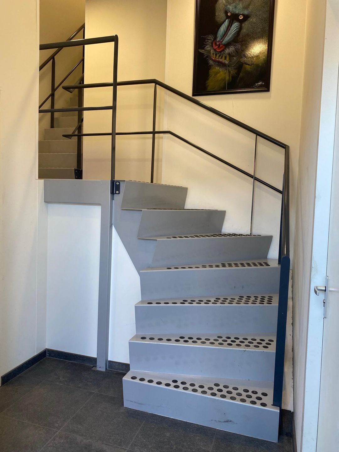 Kantoorruimte van ca. 100 m² gelegen op de eerste verdieping, voorzien van tegelvloer en systeemplafond met inbouw LED-verlichting en airco. De voorzijde is volledig voorzien van ramen wat zorgt voor veel lichtinval.