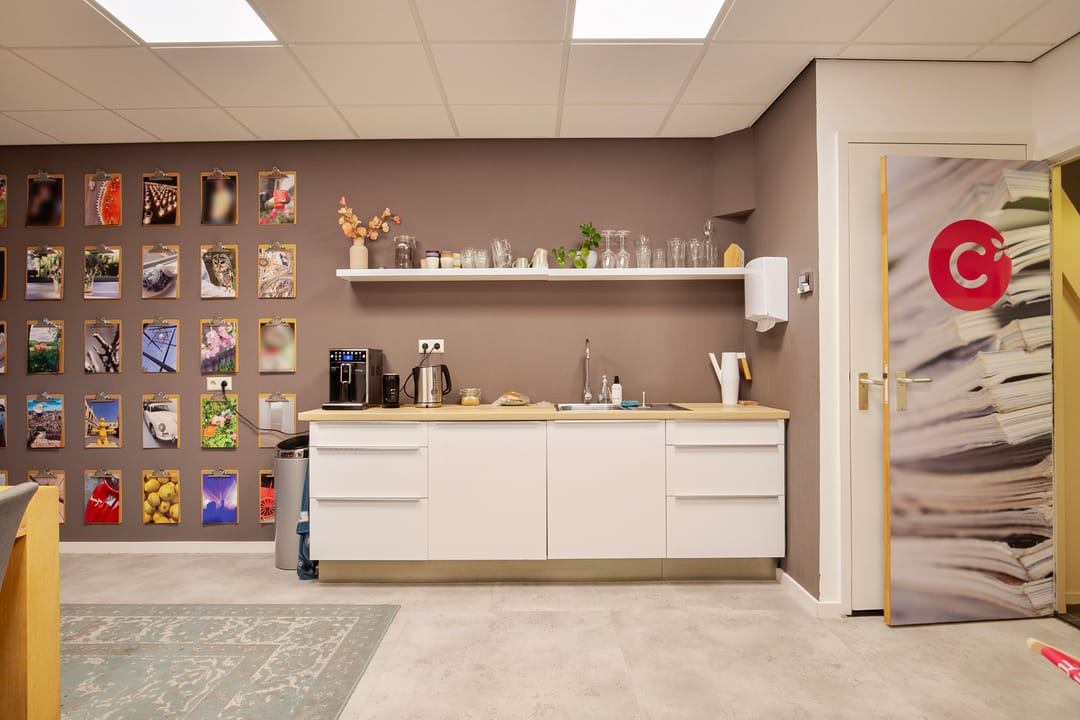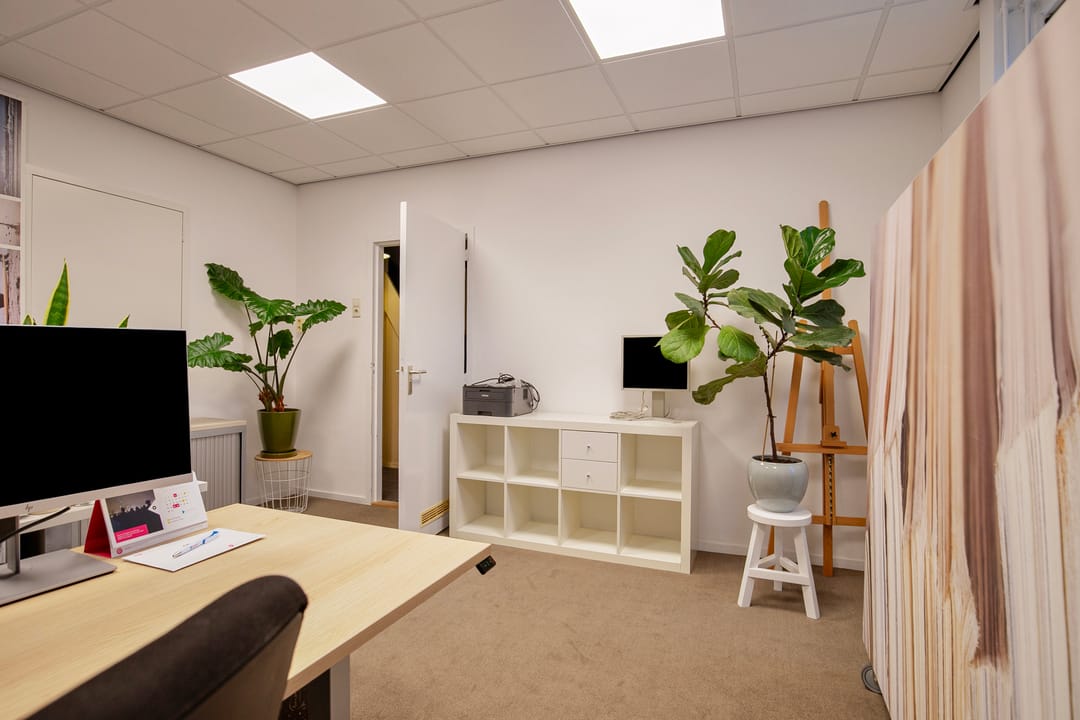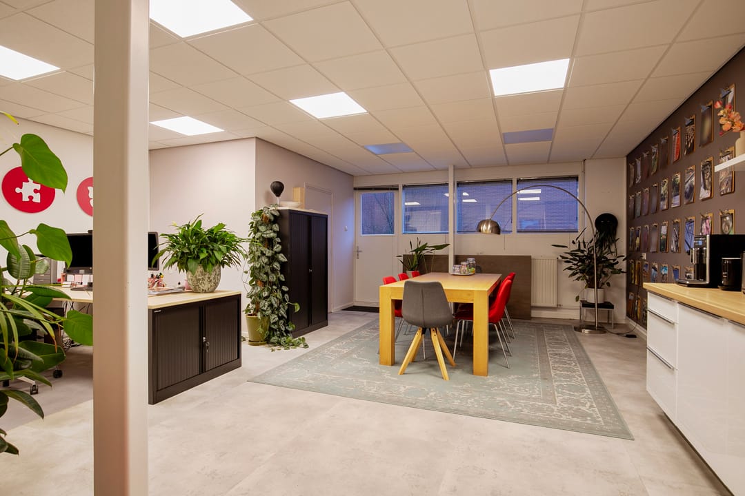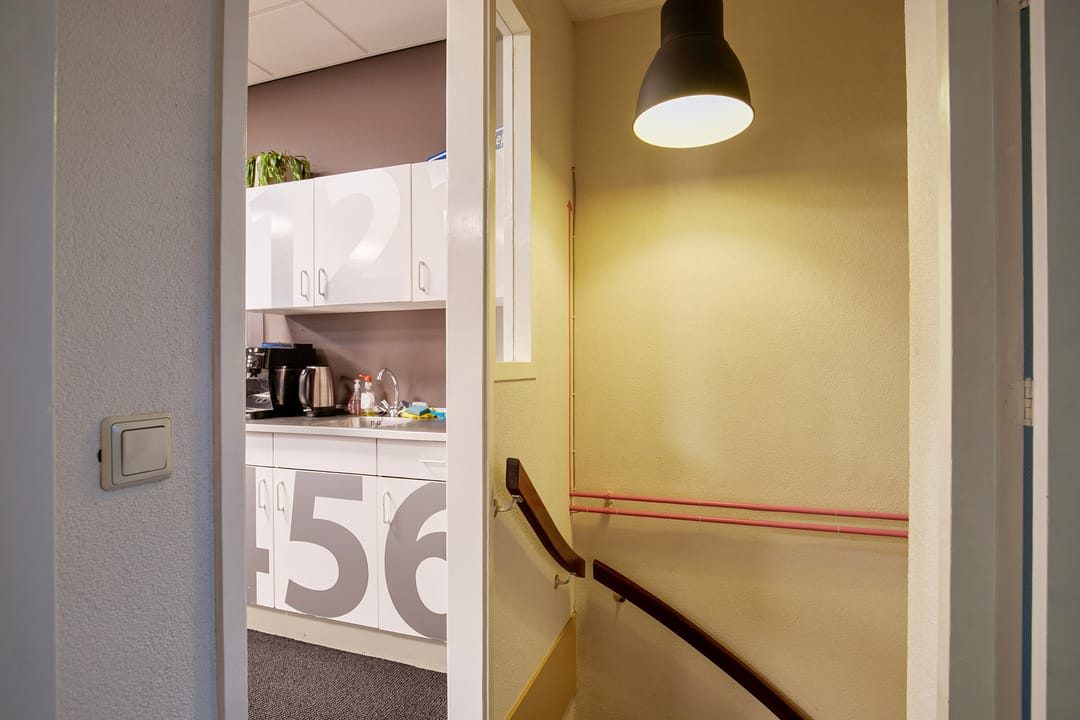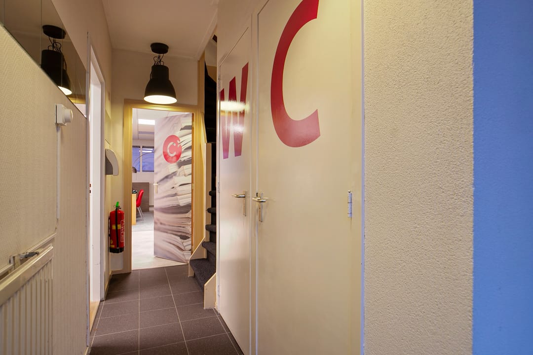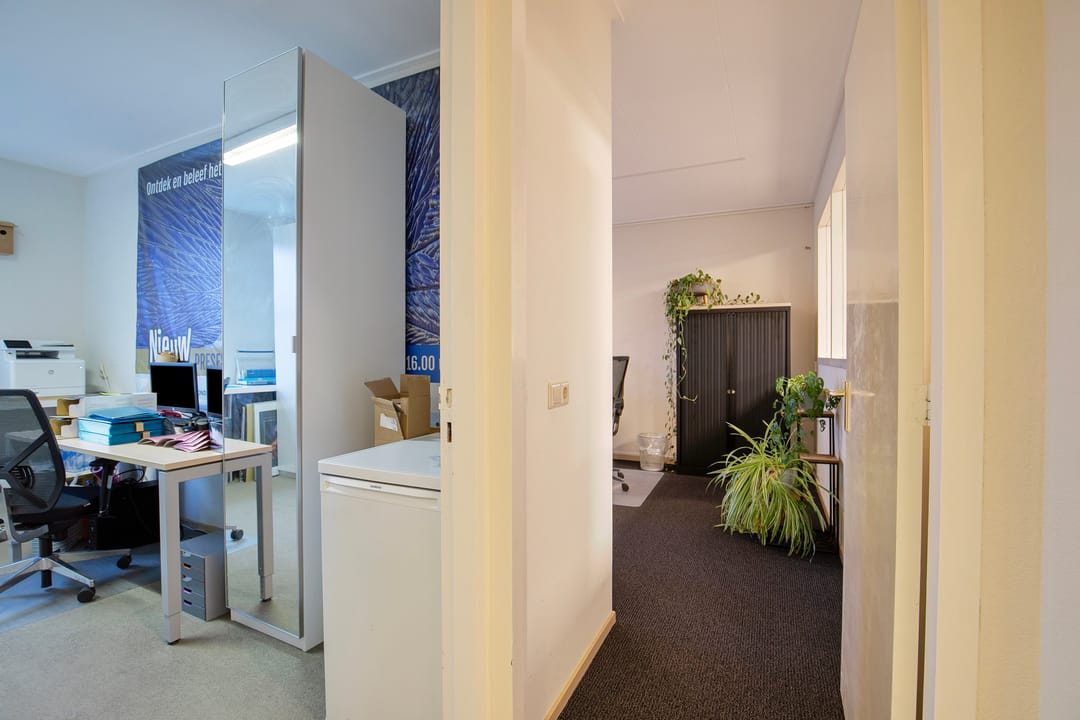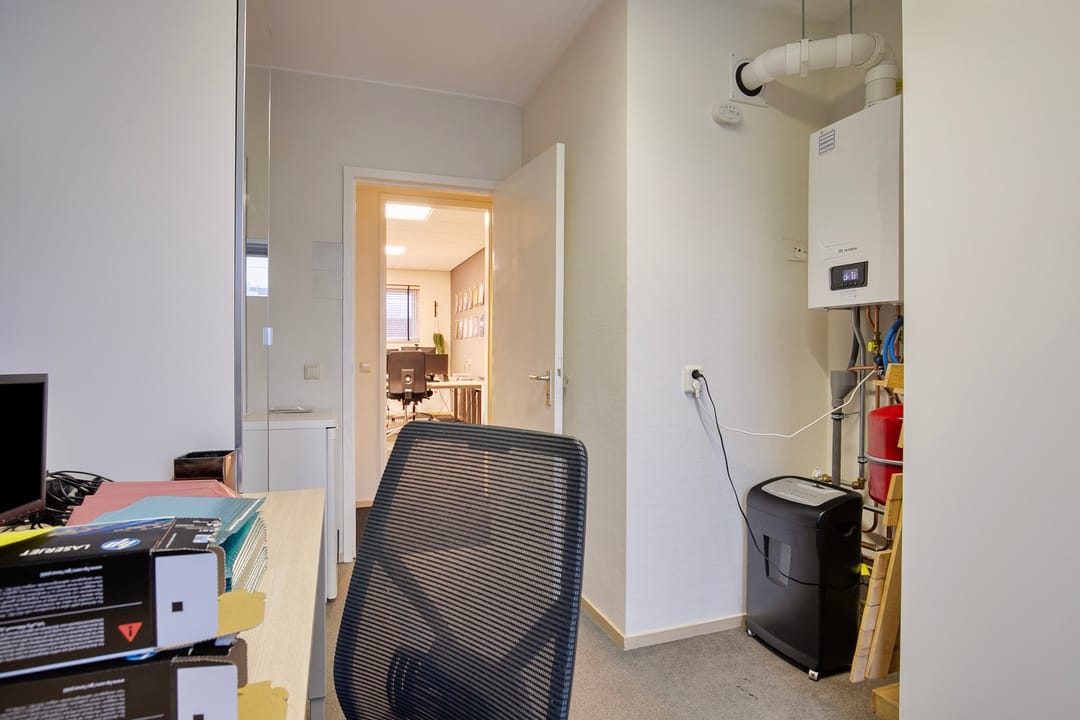 Gang, toegang tot een drietal verzorgde (kantoor)ruimtes aan. Deze kunt u goed afsluiten. Tevens de ruimte met de opstelplaats voor de CV-combiketel.