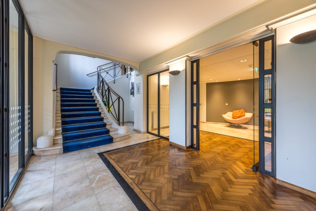 • medegebruik representatieve entreepartij, voorzien van een natuurstenen vloer met parketinleg;