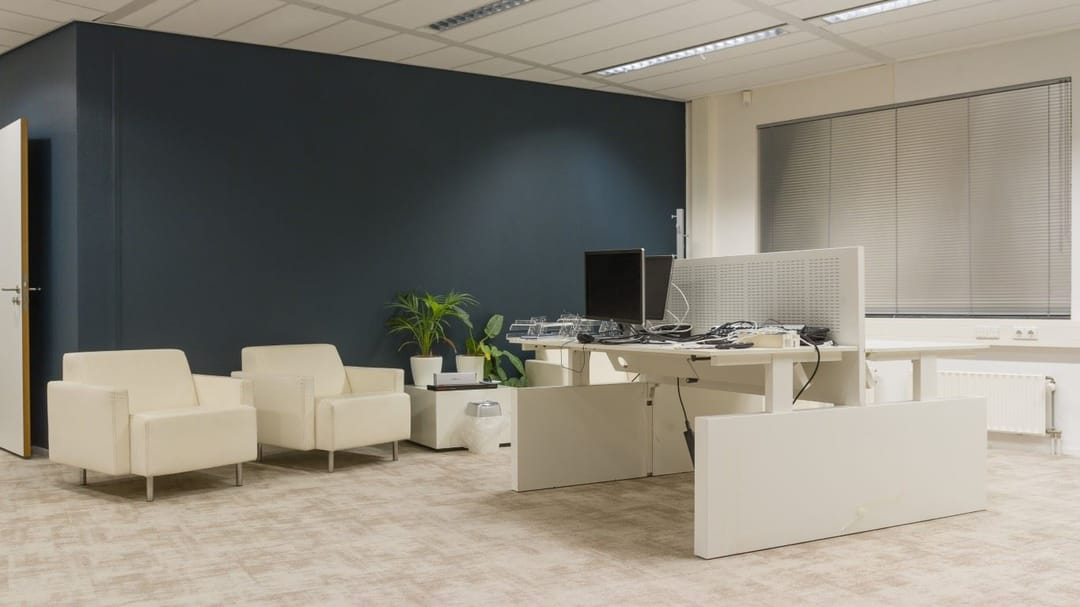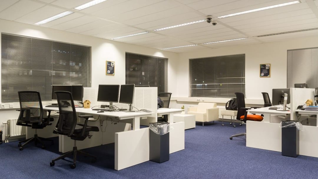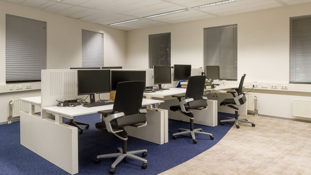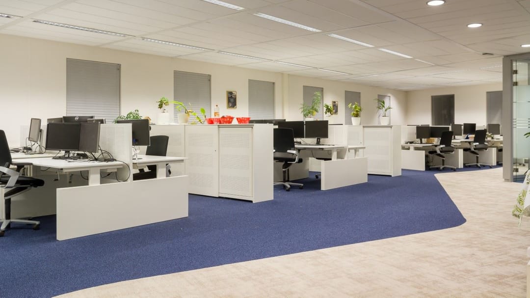 * systeemplafond voorzien van ingebouwde beeldschermvriendelijke verlichtingsarmaturen (circa 450 lux);