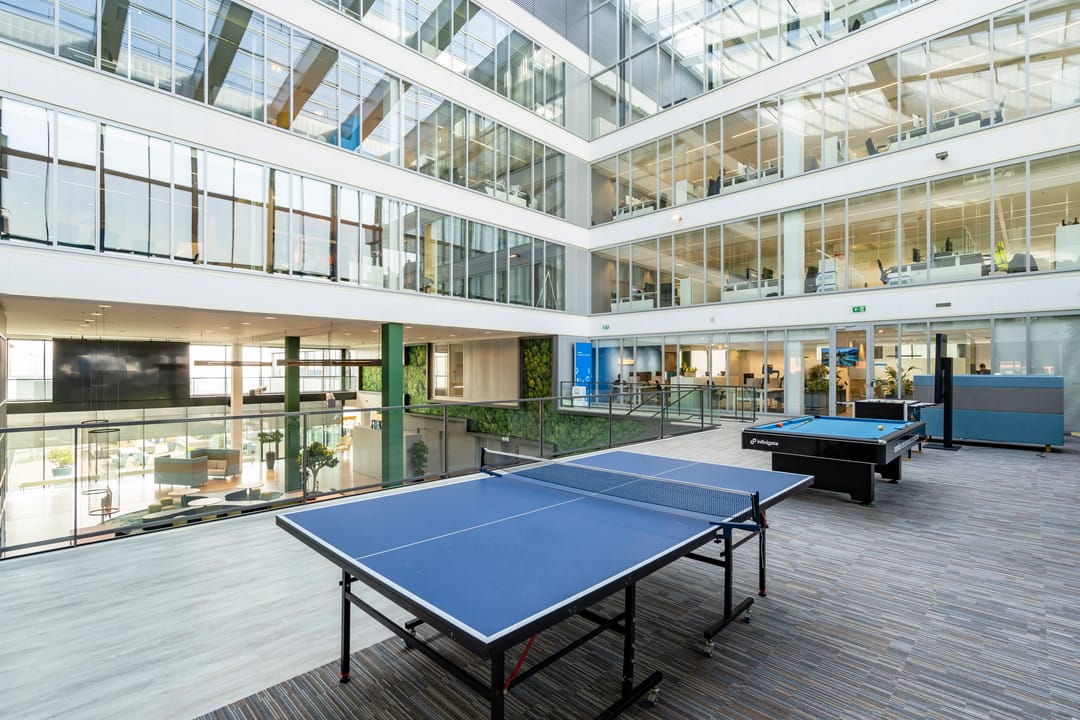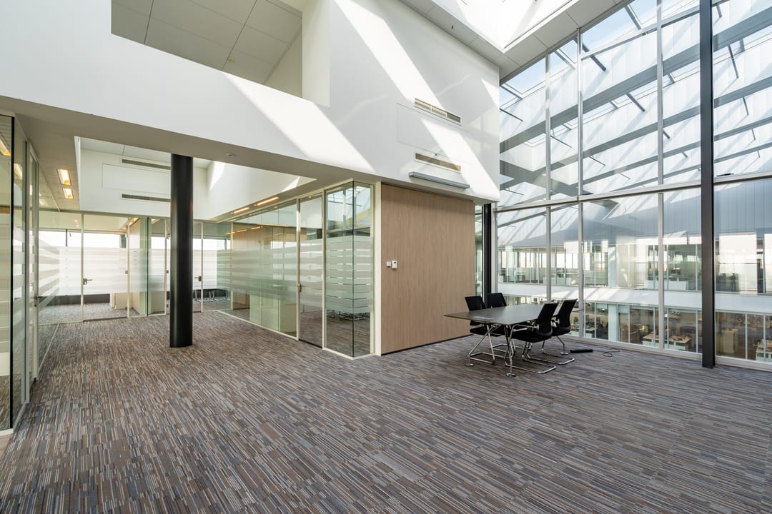 The building is located along the A4 highway and nearby N11, surrounded by residential complexes and a business park. The glass facades, atrium and skylights provide plenty of natural light, making the workspace spacious and inviting. The quiet surroundings promote a pleasant working atmosphere, while the proximity to motorways ensures fast connections to The Hague and Amsterdam. Bus stops 20 metres away ensure excellent accessibility by public transport.