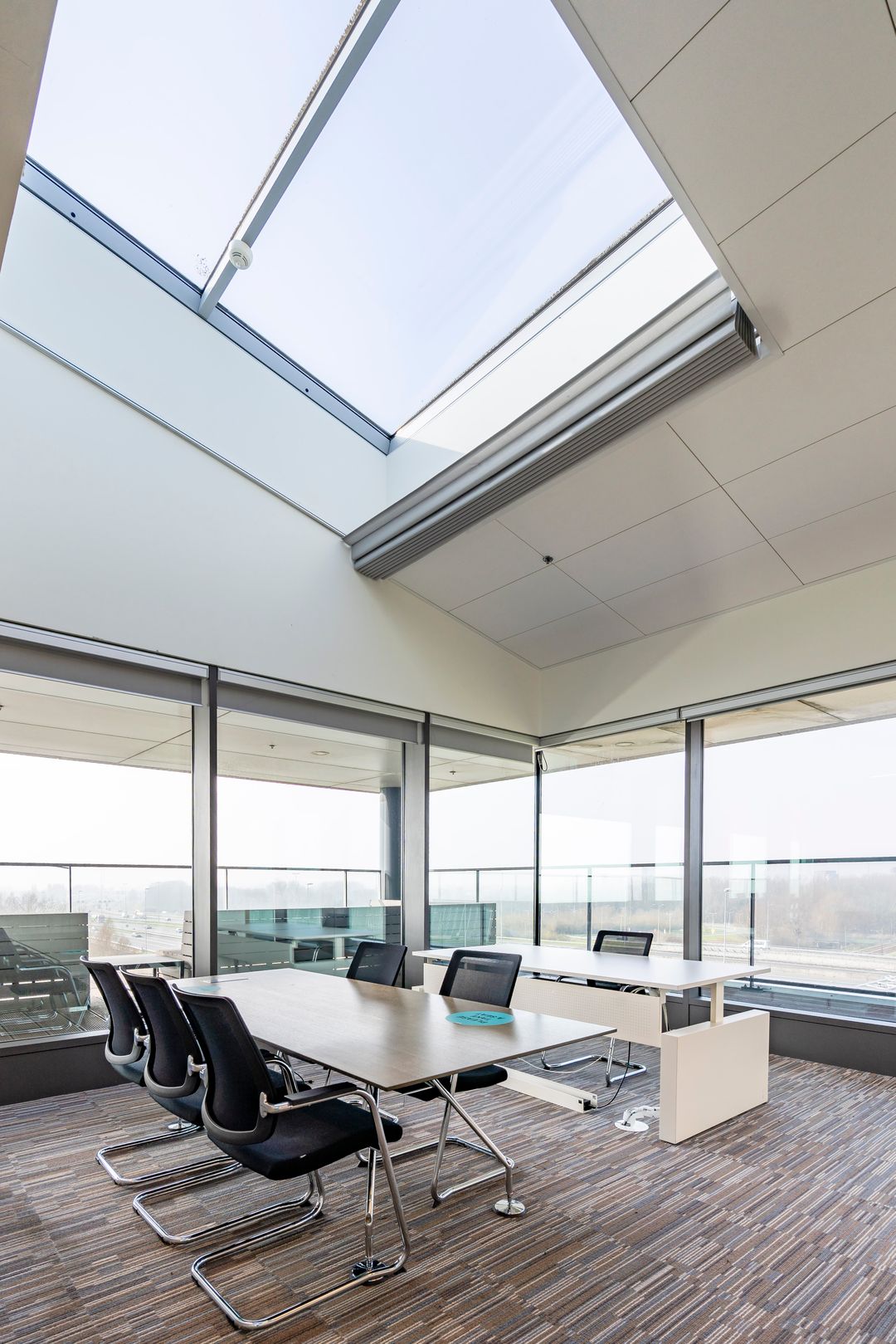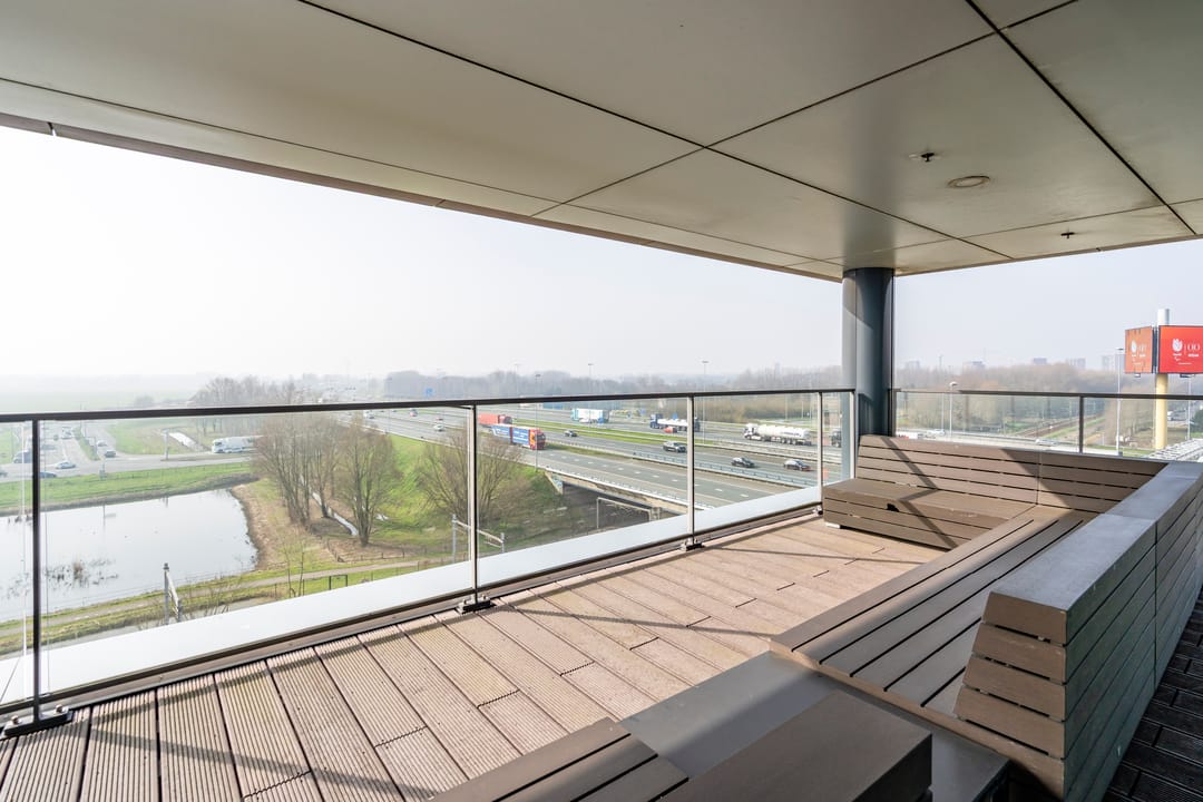 A pent-office with its own roof terrace on one of the Netherlands' busiest highways, but overlooking the meadows, with the possibility of facade advertising, makes your company highly visible.