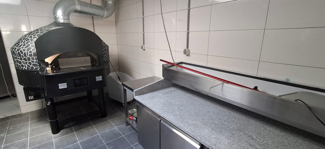Afgescheiden keukengedeelte met de keuken opstellingen, het bak en kook gedeelte