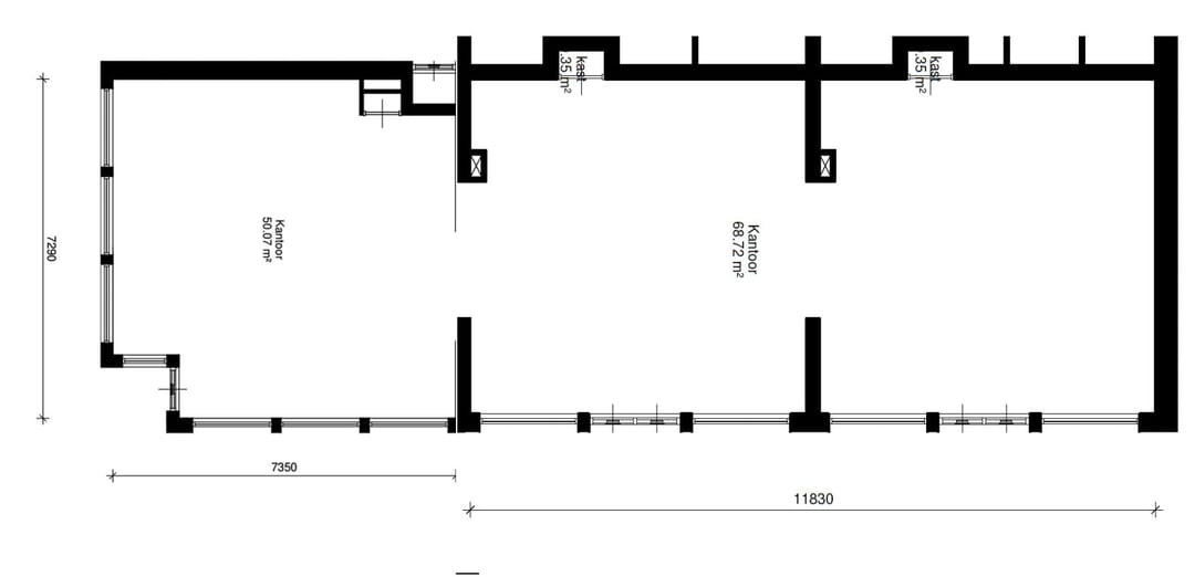 Er zijn 3 sets dubbele deuren zodat u de winkel vanaf elke zijde toegankelijk kunt maken. De gehele hoek is in feite een glazenpui en zorgt dus voor een hele lichte winkel. De huidige winkelier heeft de pui dichtgeplakt.