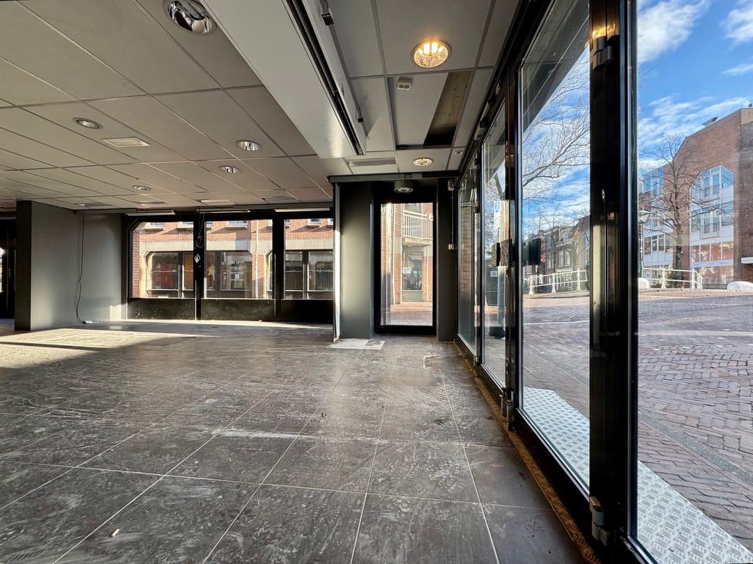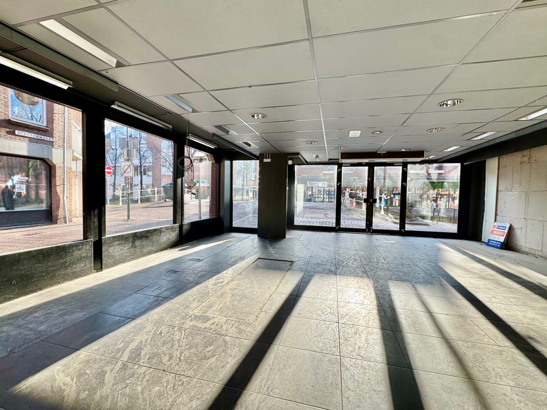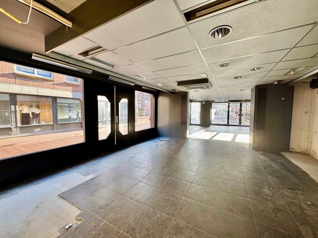 Hoek winkelpand, van 119m2 met 19 meter pui, momenteel in gebruik door Gall & Gall. Gelegen op de hoek van de Molslaan en de Beestenmarkt met een enorme hoeveelheid passanten.