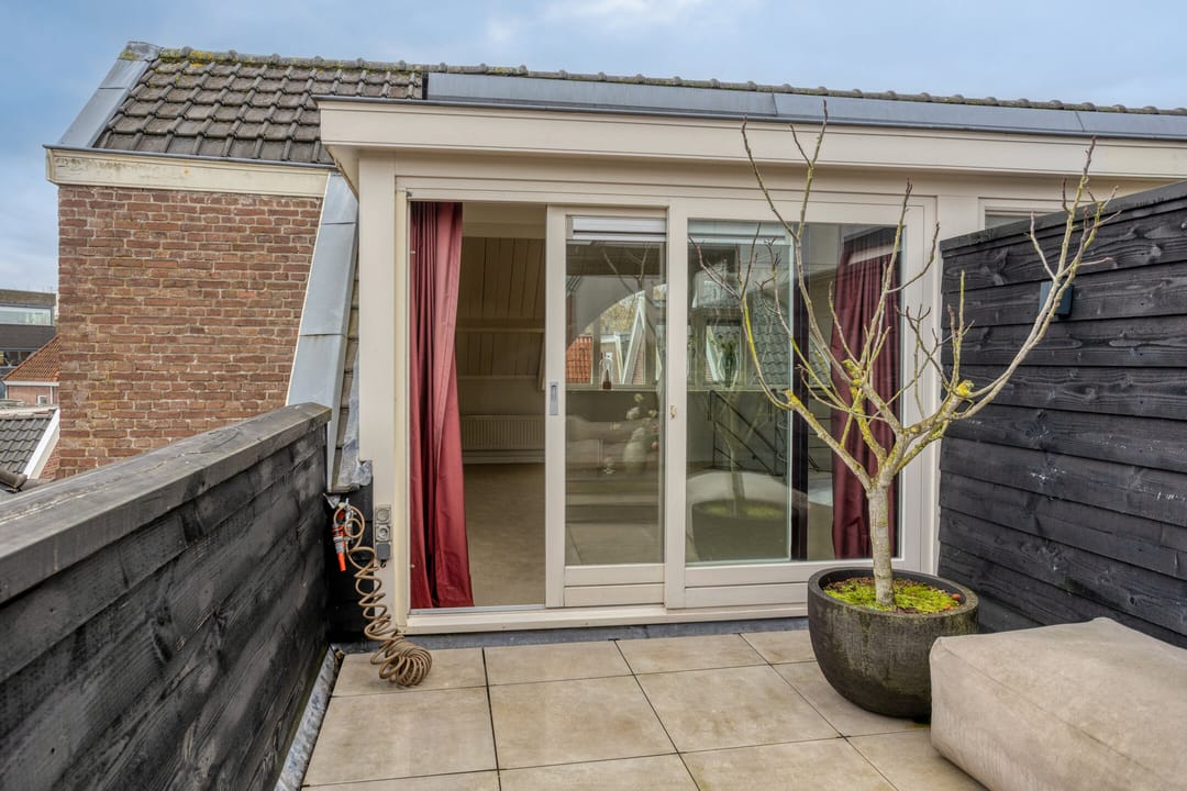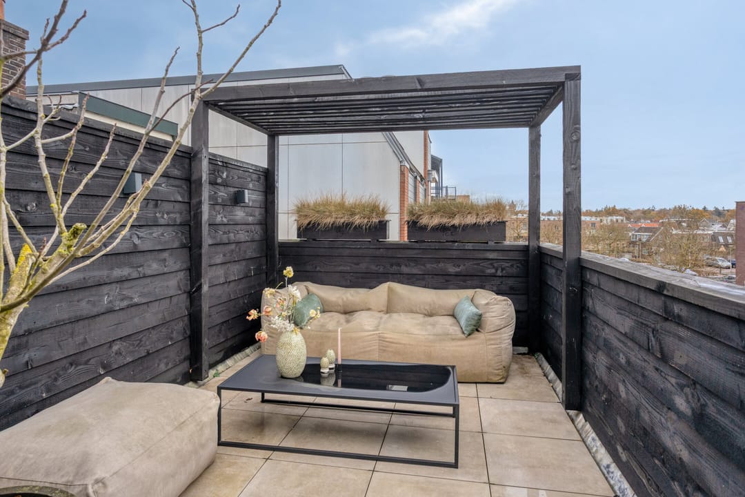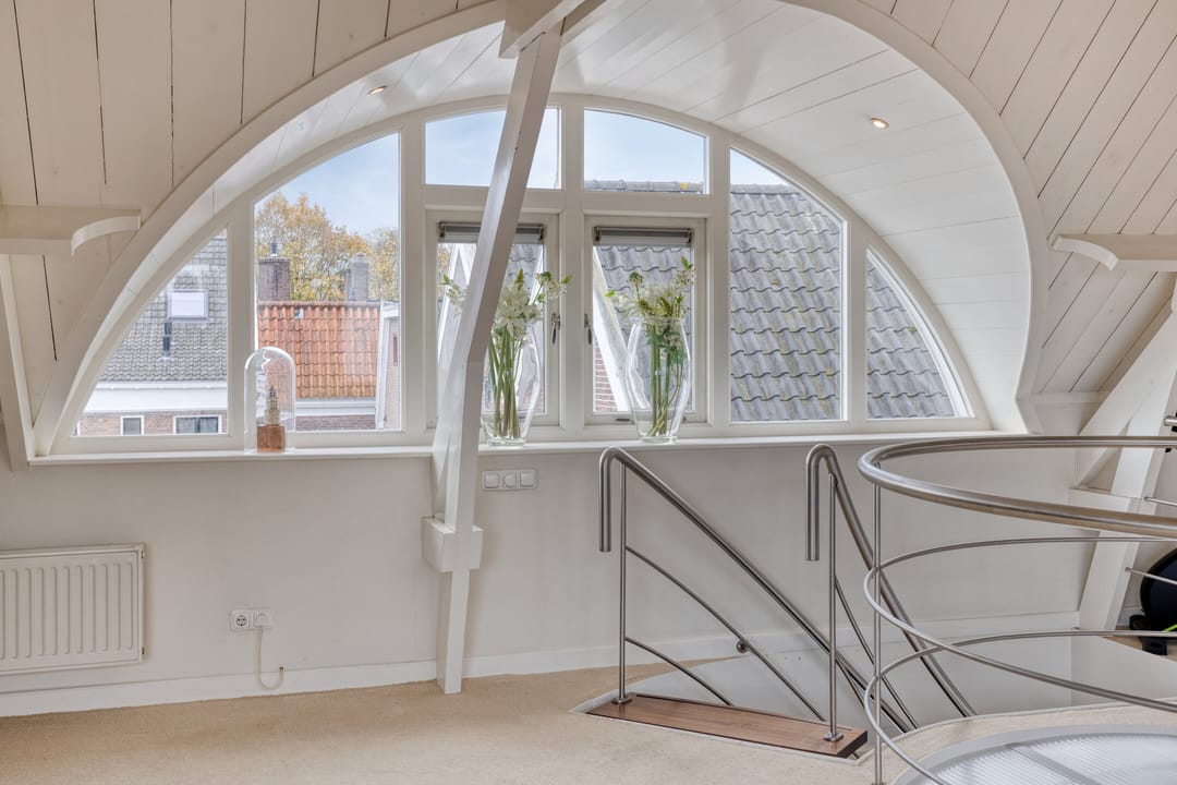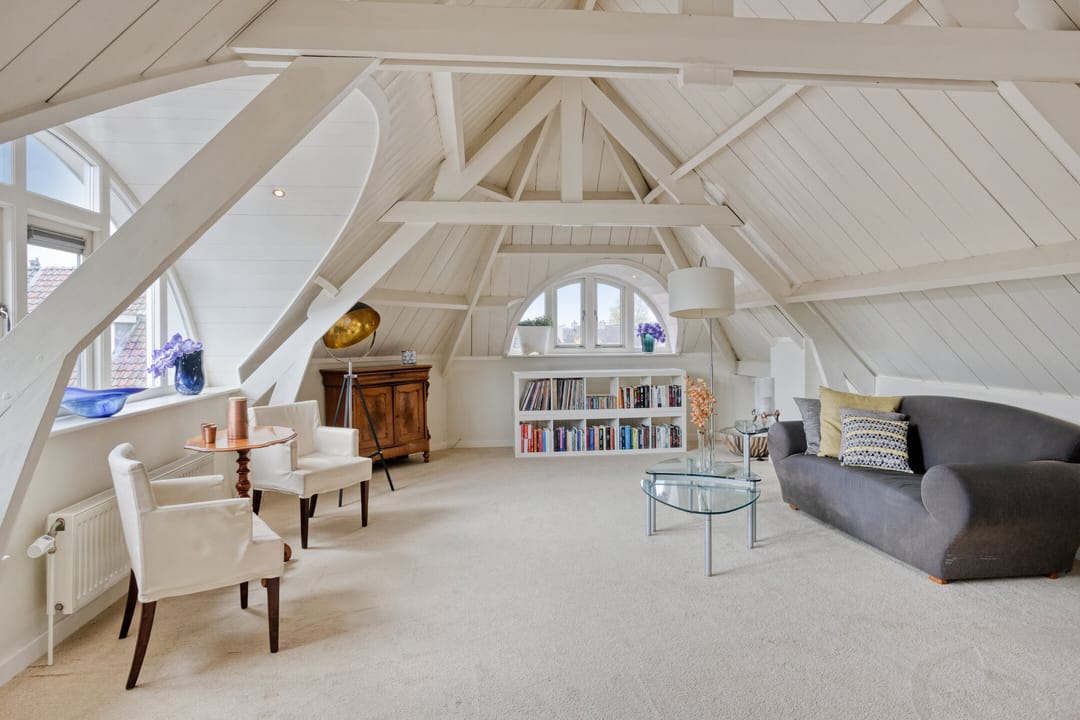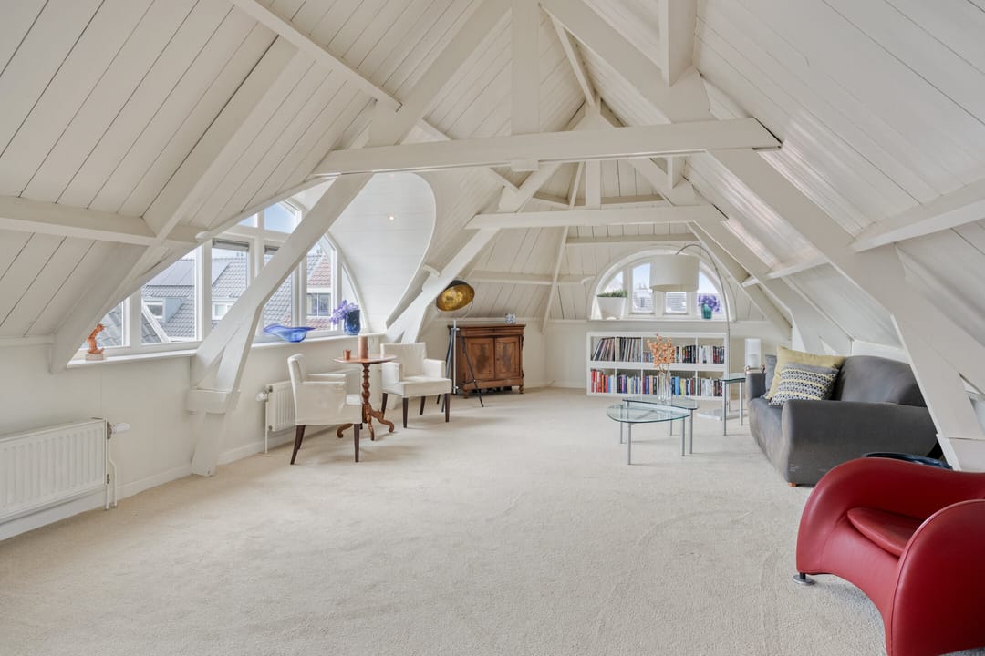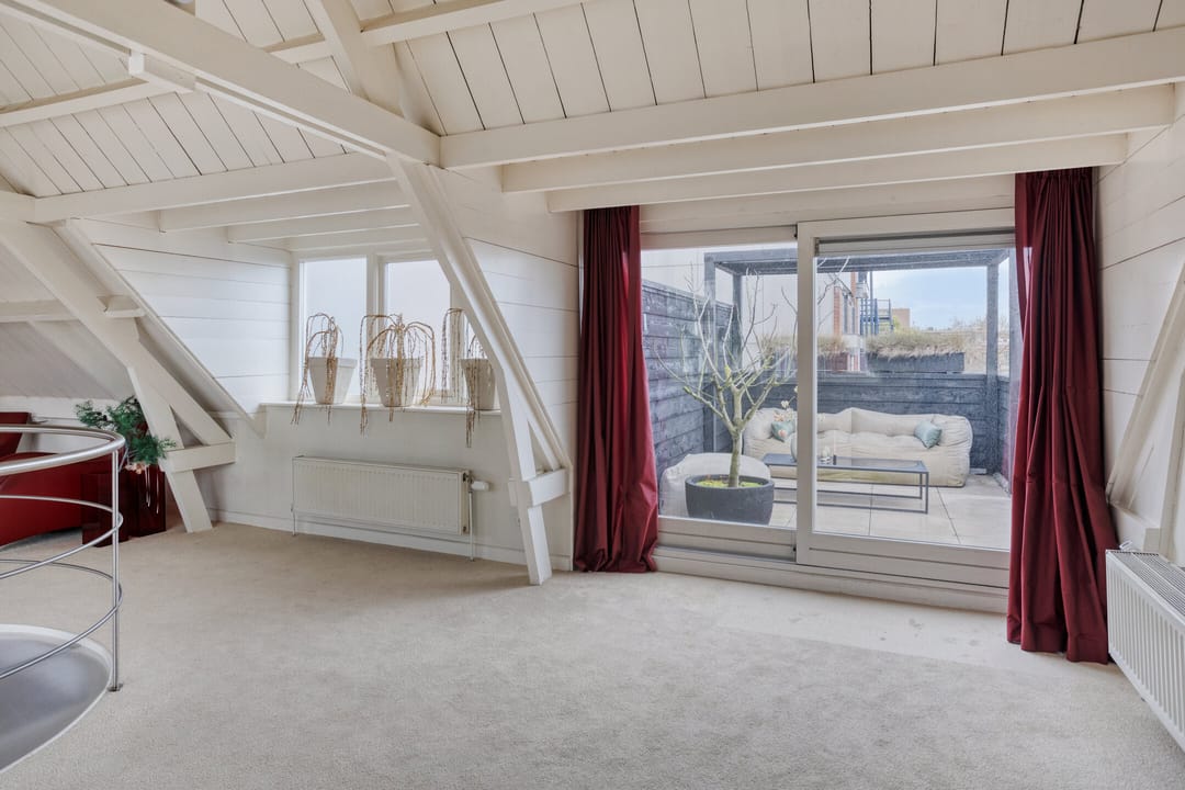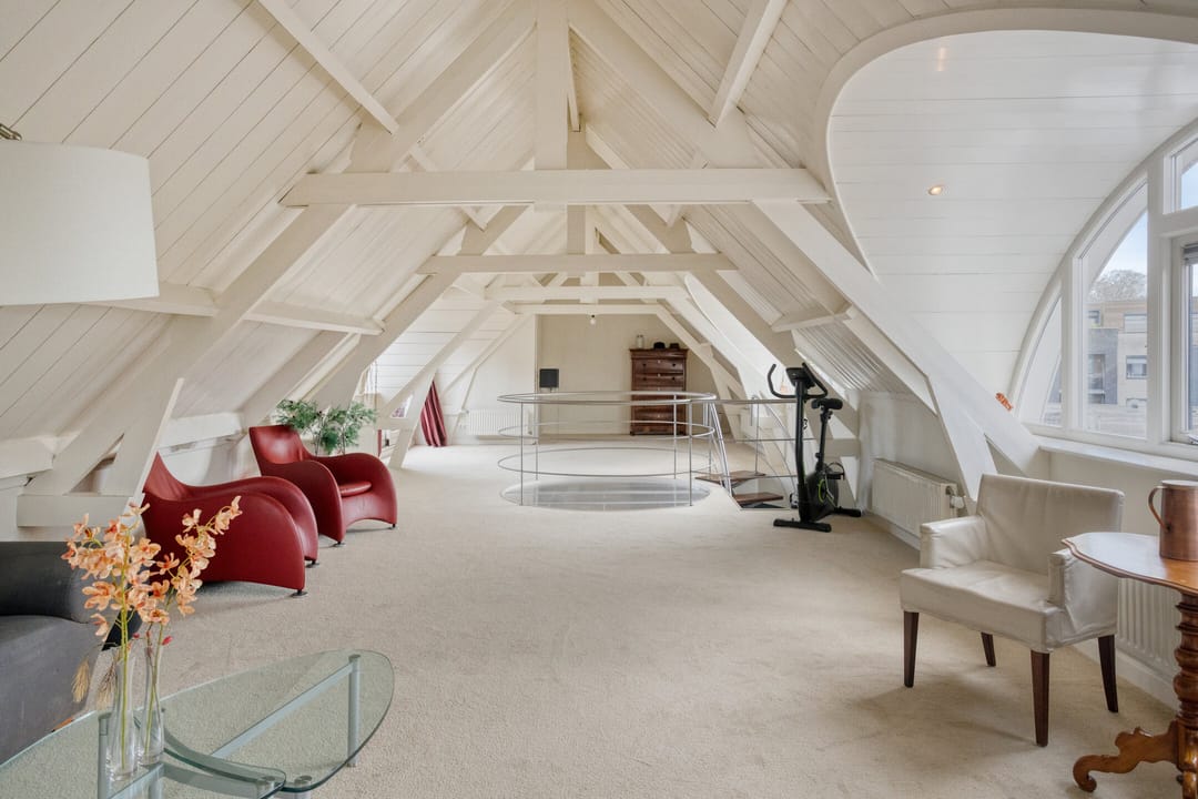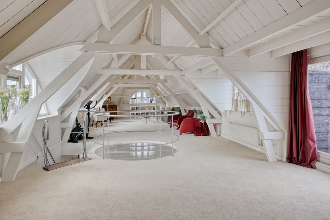De tweede verdieping is een prachtige open en lichte ruimte met grote raampartijen, waar eenvoudig twee extra slaapkamers gerealiseerd kunnen worden. Hier bevindt zich ook het fijne dakterras: een heerlijke plek om in rust van het buitenleven te genieten.
