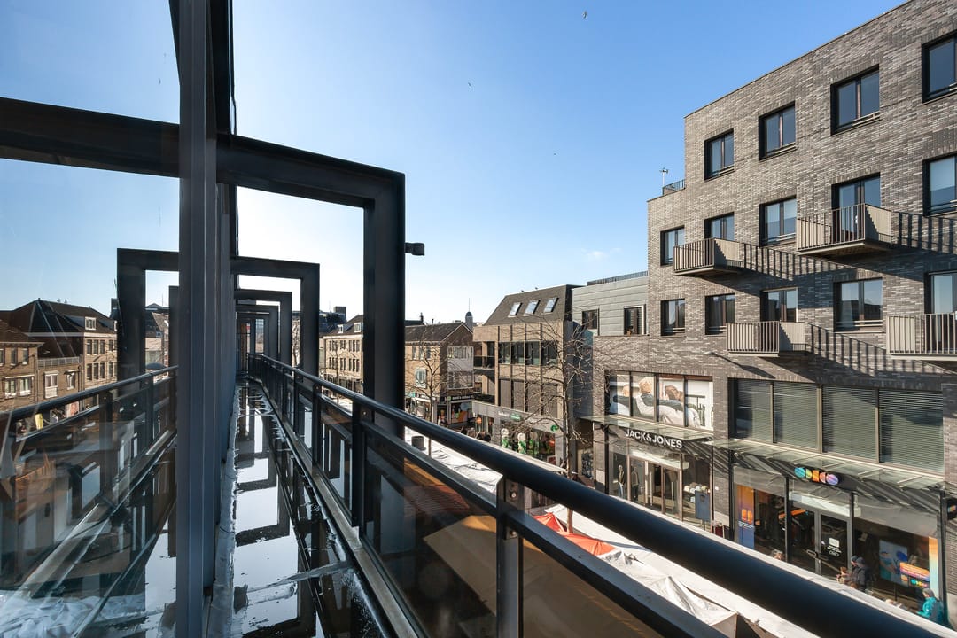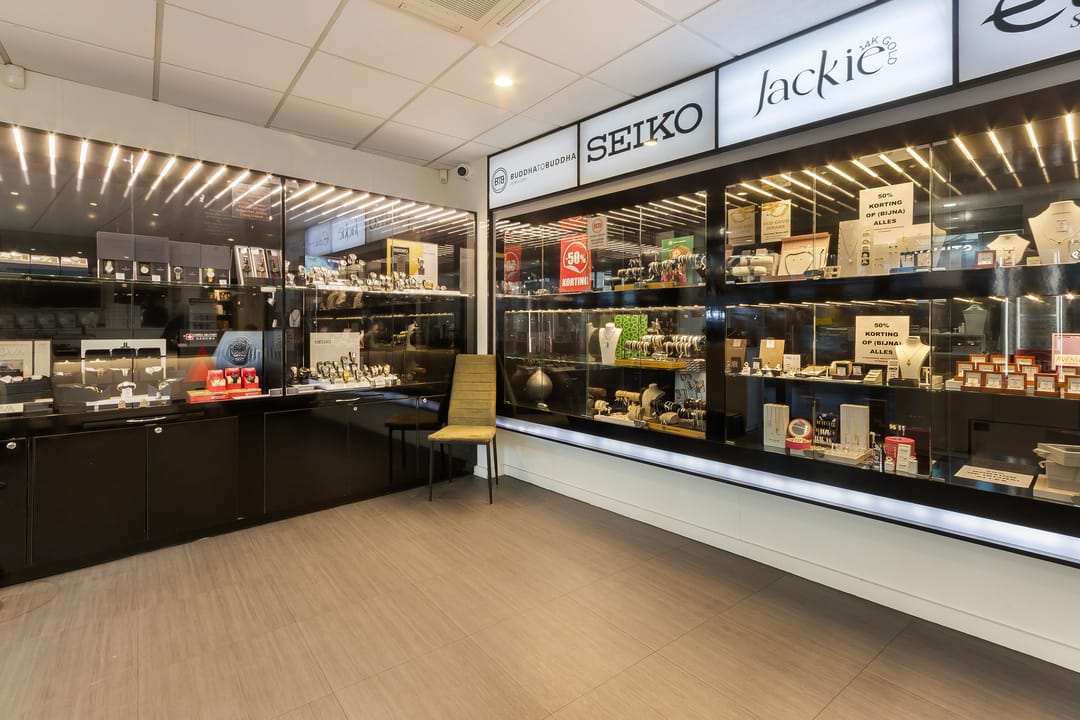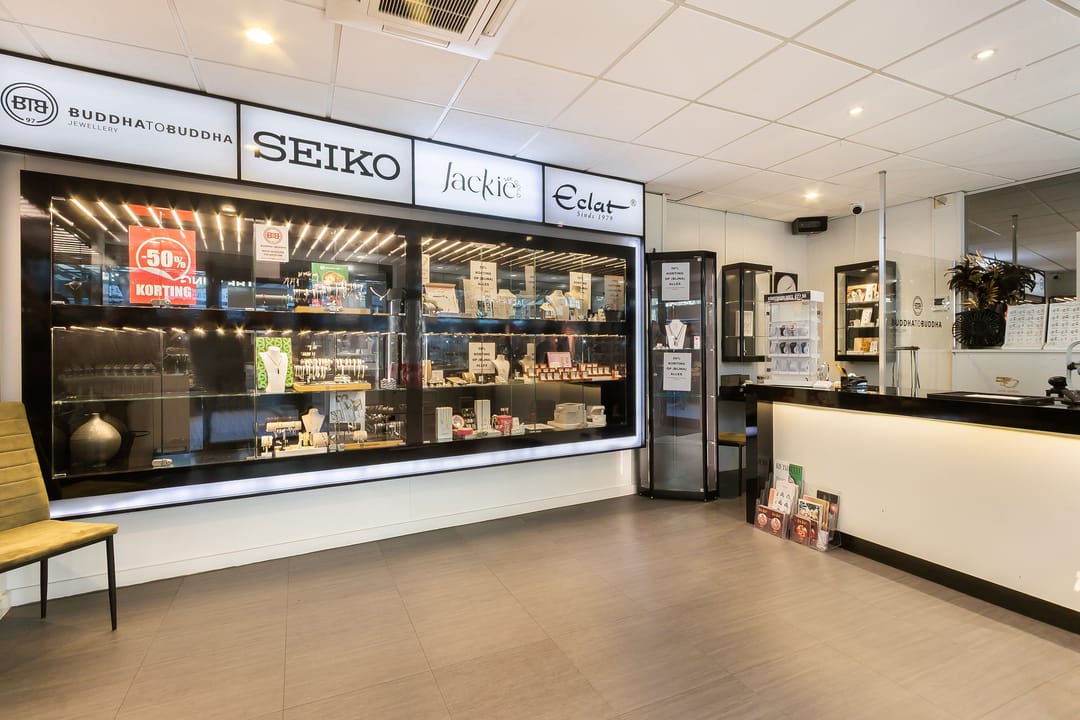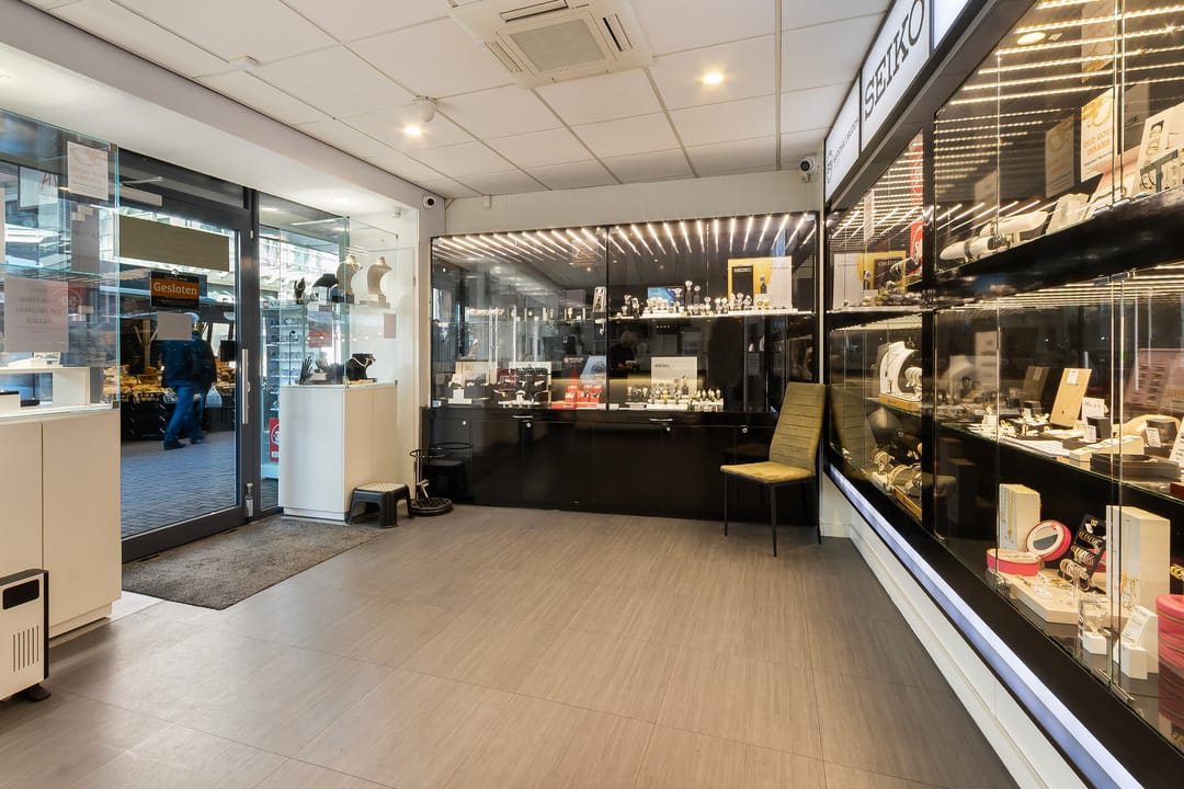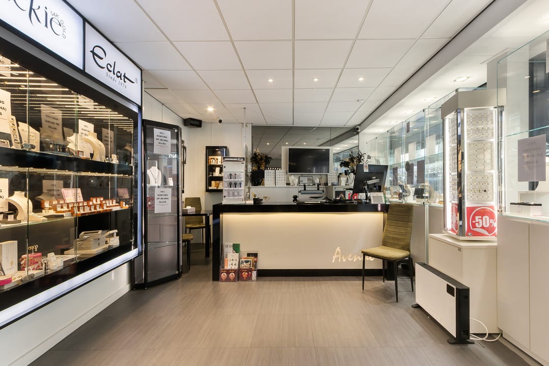 - Verlaagd systeemplafond met inbouwverlichting en een koof ter hoogte van de winkelpui met inbouwverlichting;