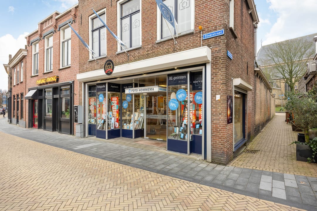 Dit is een pand dat iedere Franeker kent: aan de Zilverstraat nr. 1, tegenover het bruggetje. Thans is het in het geheel in gebruik als bedrijfspand, maar oorspronkelijk werd het gebouwd en gebruikt als woonhuis met op de begane grond een winkel. Op de 1ste verd. is desgewenst relatief eenvoudig weer woonruimte te creëren (een uitgebreide keuken is al aanwezig) en op de 2de verd. is nog een slaapkamer. Achter is een eigen parkeerplek: een luxe zo midden in de stad! Totale perceeloppervlakte: 220 m².