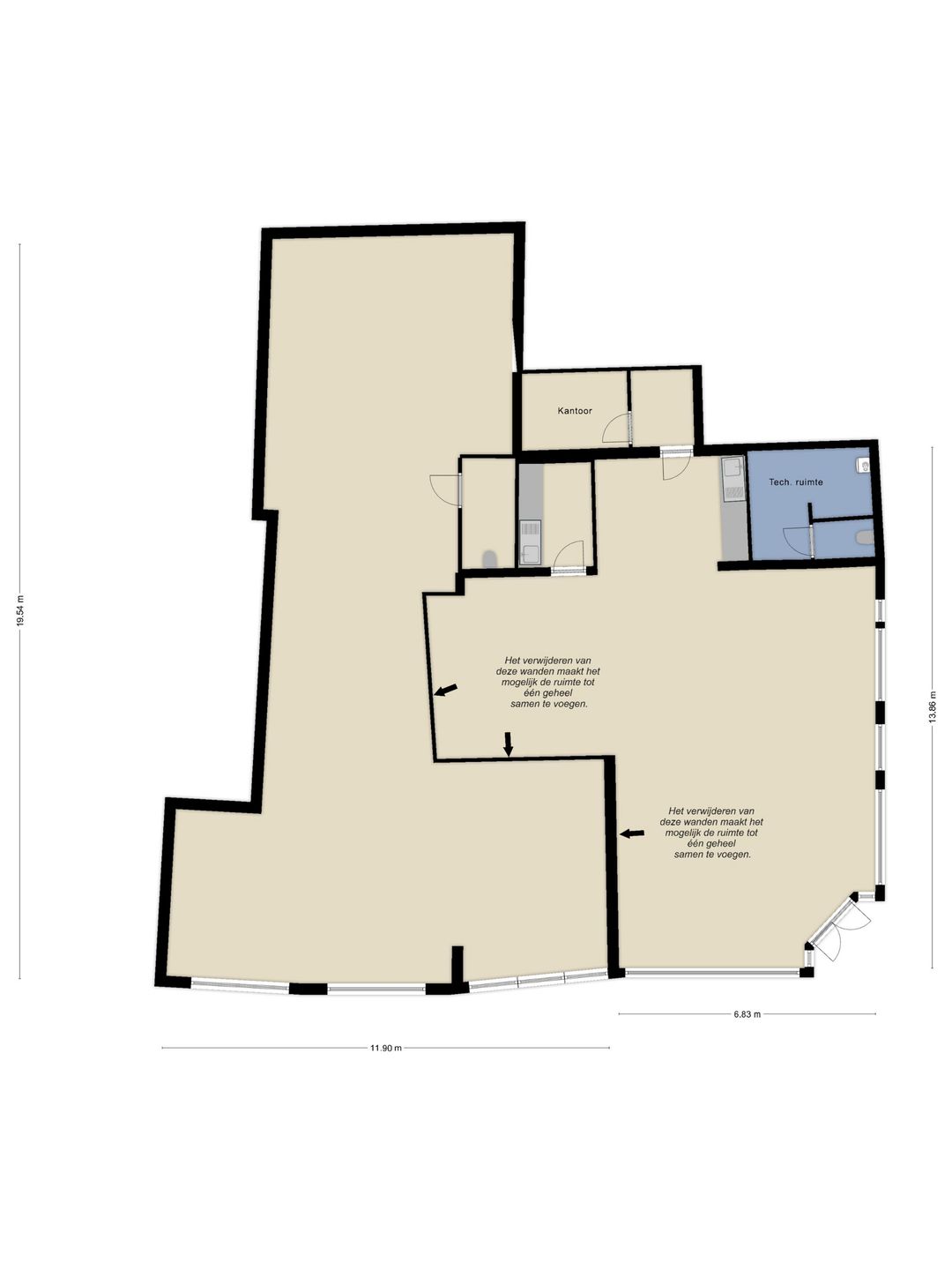 De totale verhuurbare vloeroppervlakte bedraagt circa 283 m2 VVO op de begane grond.