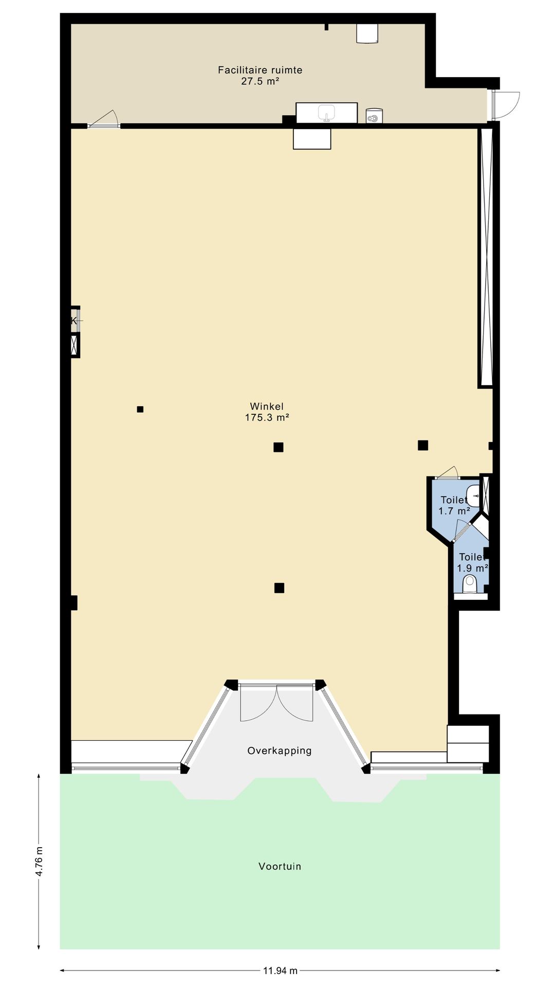 • Oplevering in huidige staat, casco verhuur.