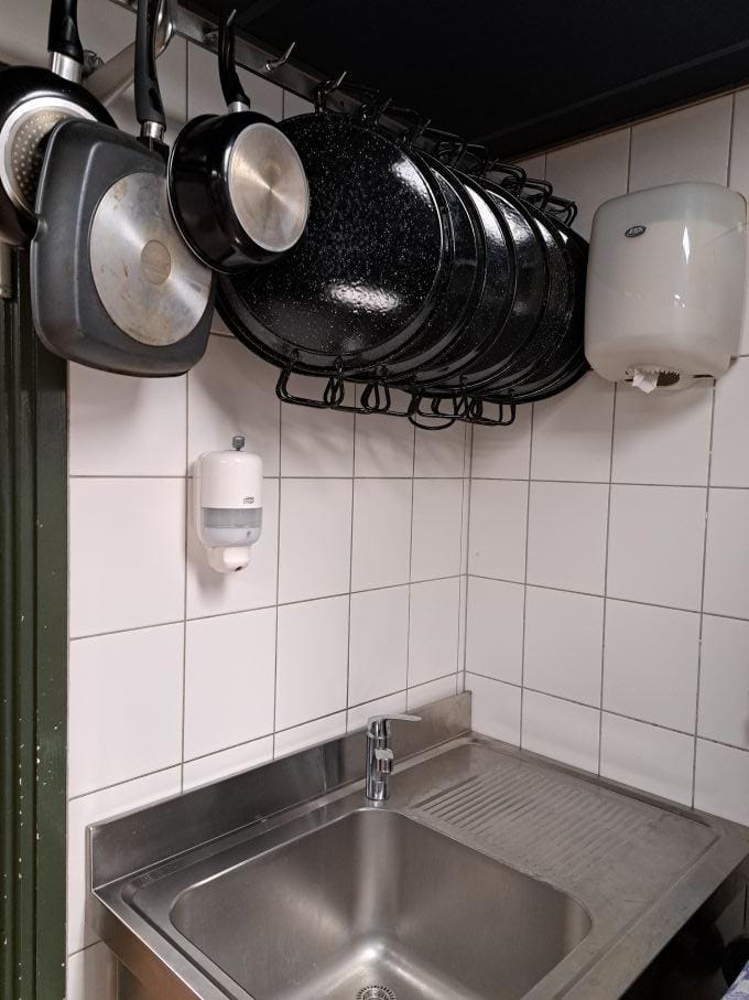 De winkelinventaris is ruim en gericht is op het verkopen van tapas en maaltijden. Het aangrenzende ruime keukengedeelte heeft een inventaris met onder meer een gasfornuis, ovens, afzuigkappen, een professionele afwasmachine en een koel- en vriescel voor opslag van verse ingrediënten, klaarstaande bestellingen en voorraad van reeds bereide maaltijden en tapas.