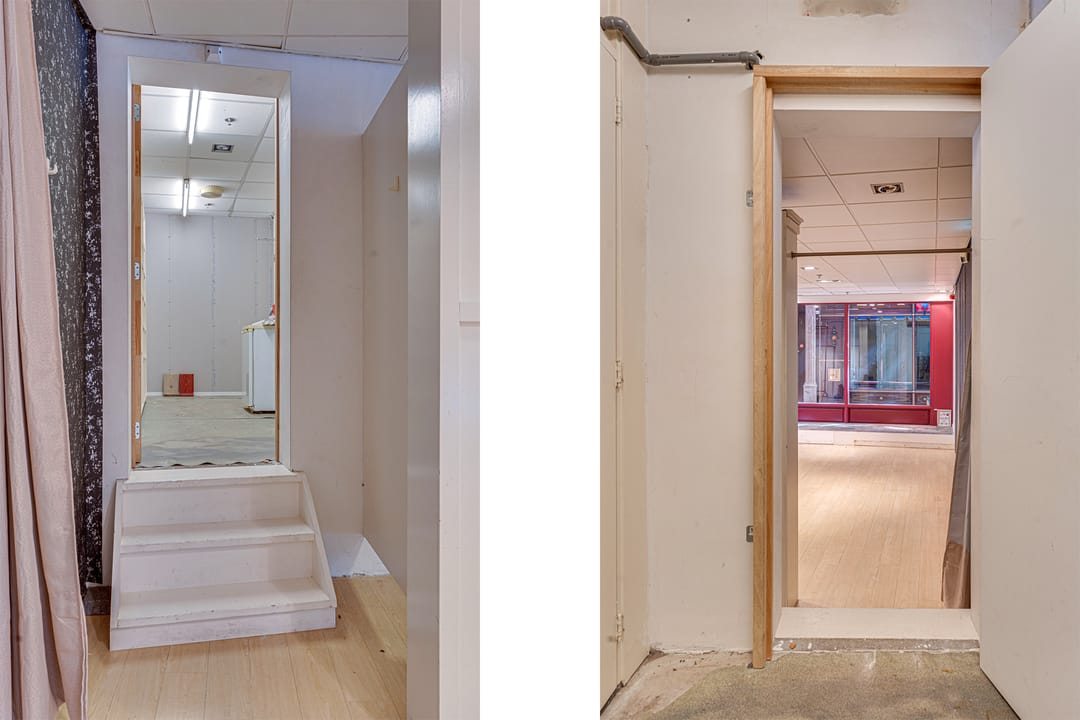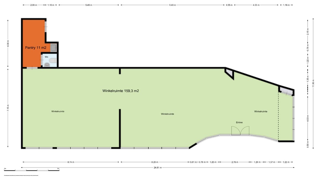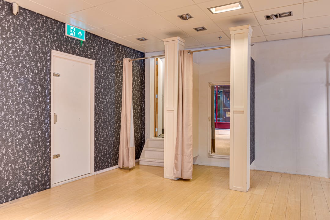 Achterin de winkel bevindt zich een aparte ruimte van circa 11 m², voorzien van een pantry, toilet en magazijn, die goed afsluitbaar is van de winkelruimte. Hierdoor kan deze ruimte optimaal worden benut als opslag of personeelsruimte.
