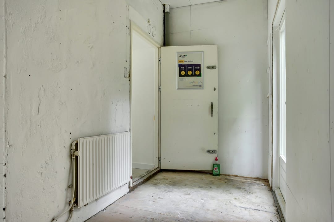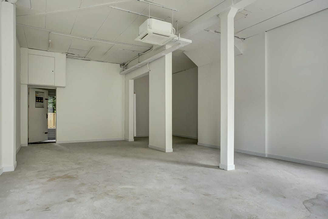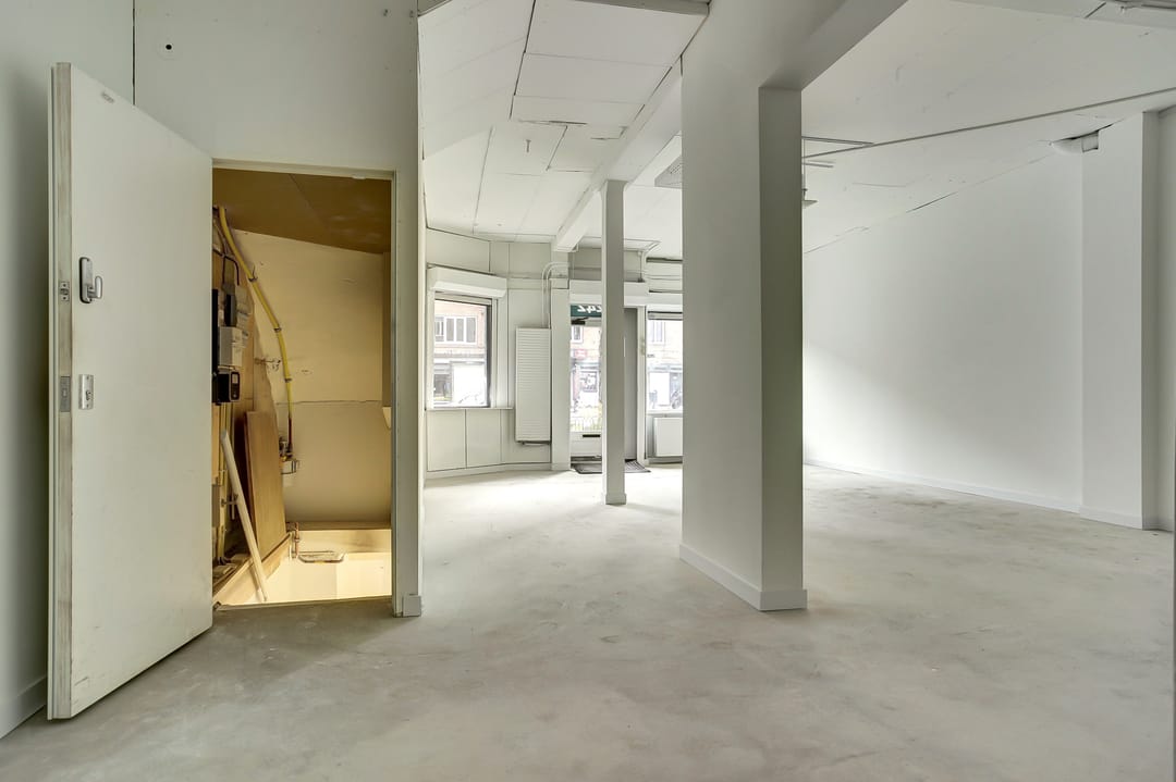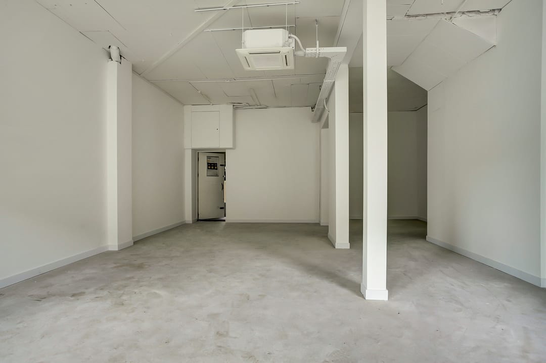De ruimte is thans geheel casco, maar voorzien van cv, airco en rolluiken.