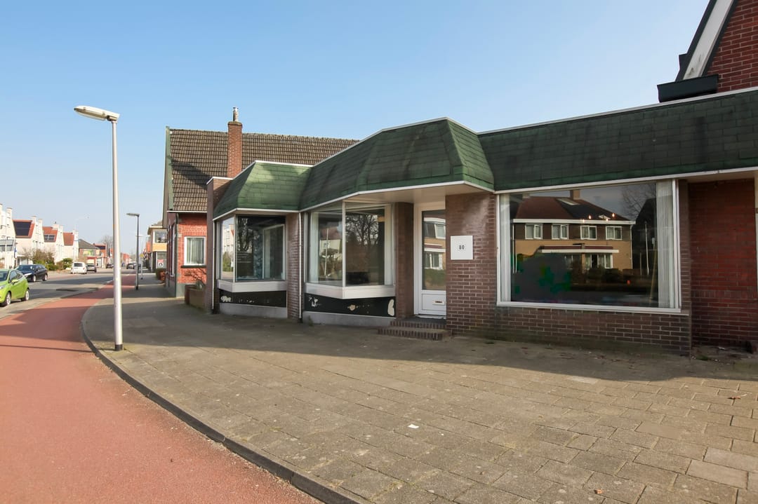 De winkel-/kantoorruimte beschikt over een frontbreedte van circa 10 meter, wat zorgt voor een aantrekkelijke presentatie en uitstekende exposure. De totale oppervlakte bedraagt circa 80 m², waardoor er volop mogelijkheden zijn voor een efficiënte inrichting en diverse bedrijfsactiviteiten.