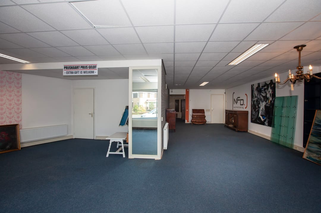 De bedrijfsruimte heeft een functionele en overzichtelijke indeling en bestaat uit, een ruime en lichte winkel-/kantoorruimte, een praktisch magazijn en een toiletvoorziening.