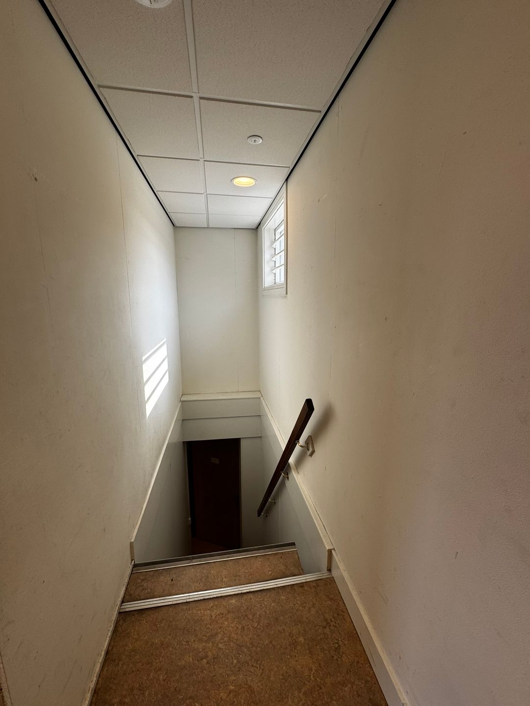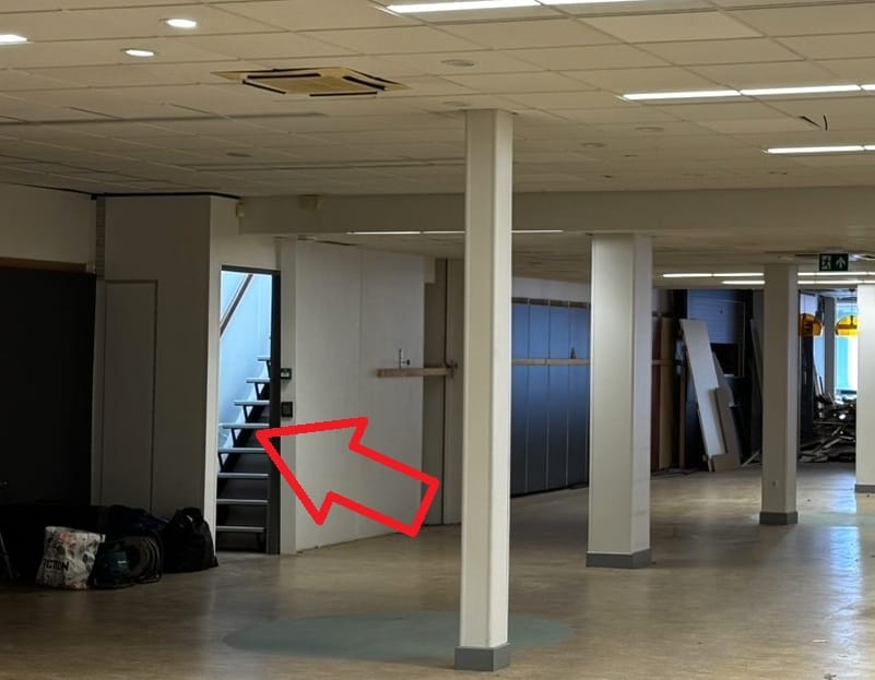 1e verdieping: Kantine, kantoor, toilet en lockerroom.
