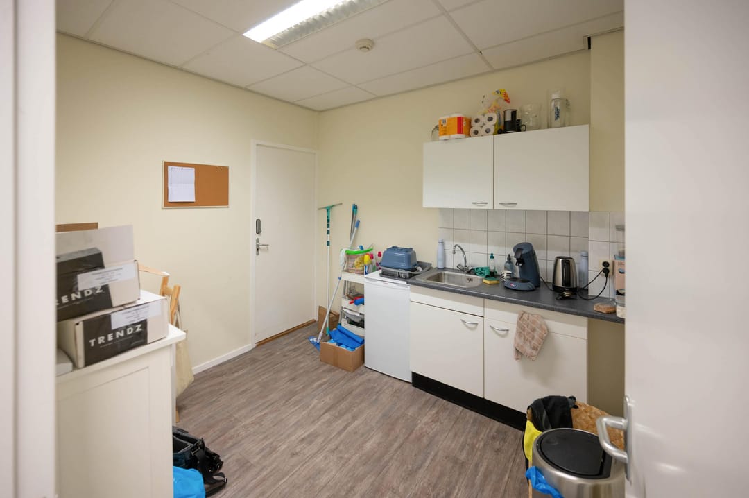 Entree / winkelruimte, magazijn, kantine met pantry en toilet