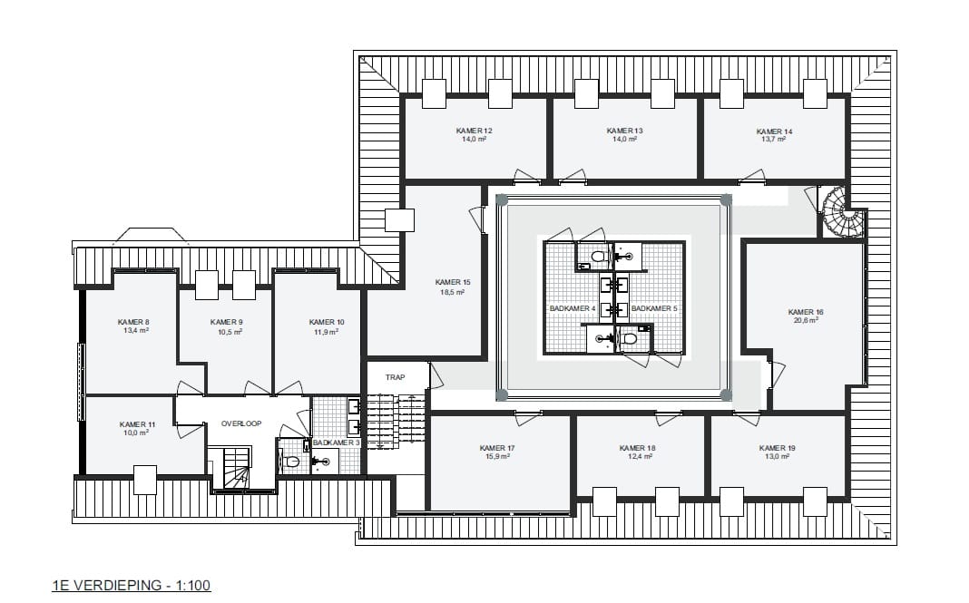 - 12 kamers (ca. 10–20 m²)
