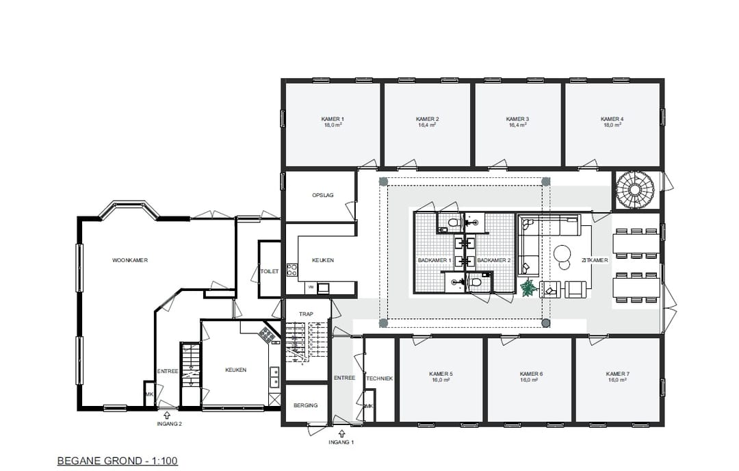 - 7 kamers (ca. 16–18 m²)