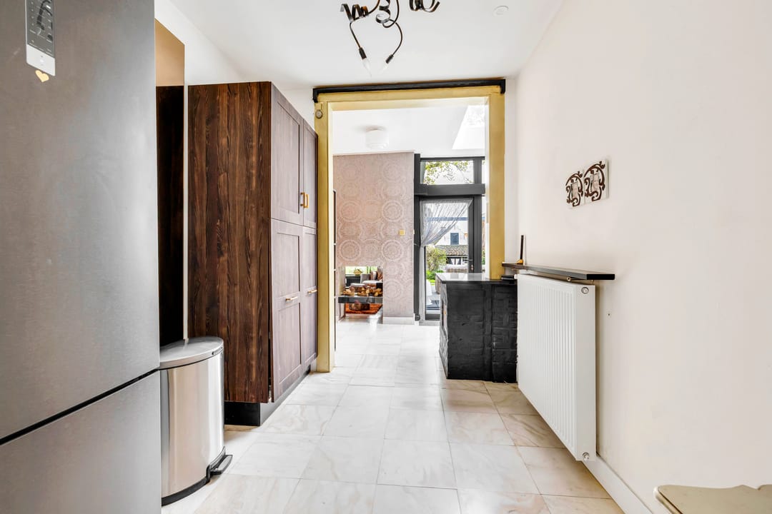 Aan de linkerzijde van de winkel bevindt zich de toegangsdeur naar de woonruimte. De begane grond beschikt over een ruime entree/hal die tevens via een deur verbonden is met de winkelruimte. Daarnaast is de begane grond ingedeeld in een bijkeuken, een woonkamer met eethoek, een volledig uitgeruste keuken met diverse inbouwapparatuur en een aparte toiletruimte. Via de trap bereik je de eerste verdieping, waar zich vier slaapkamers bevinden, waarvan één met een ruime inloopkast. Ook is er een aparte toiletruimte en een luxe badkamer aanwezig. De tweede verdieping biedt een zeer ruime zolder, geschikt voor opslag, werkruimte of een extra leefruimte.