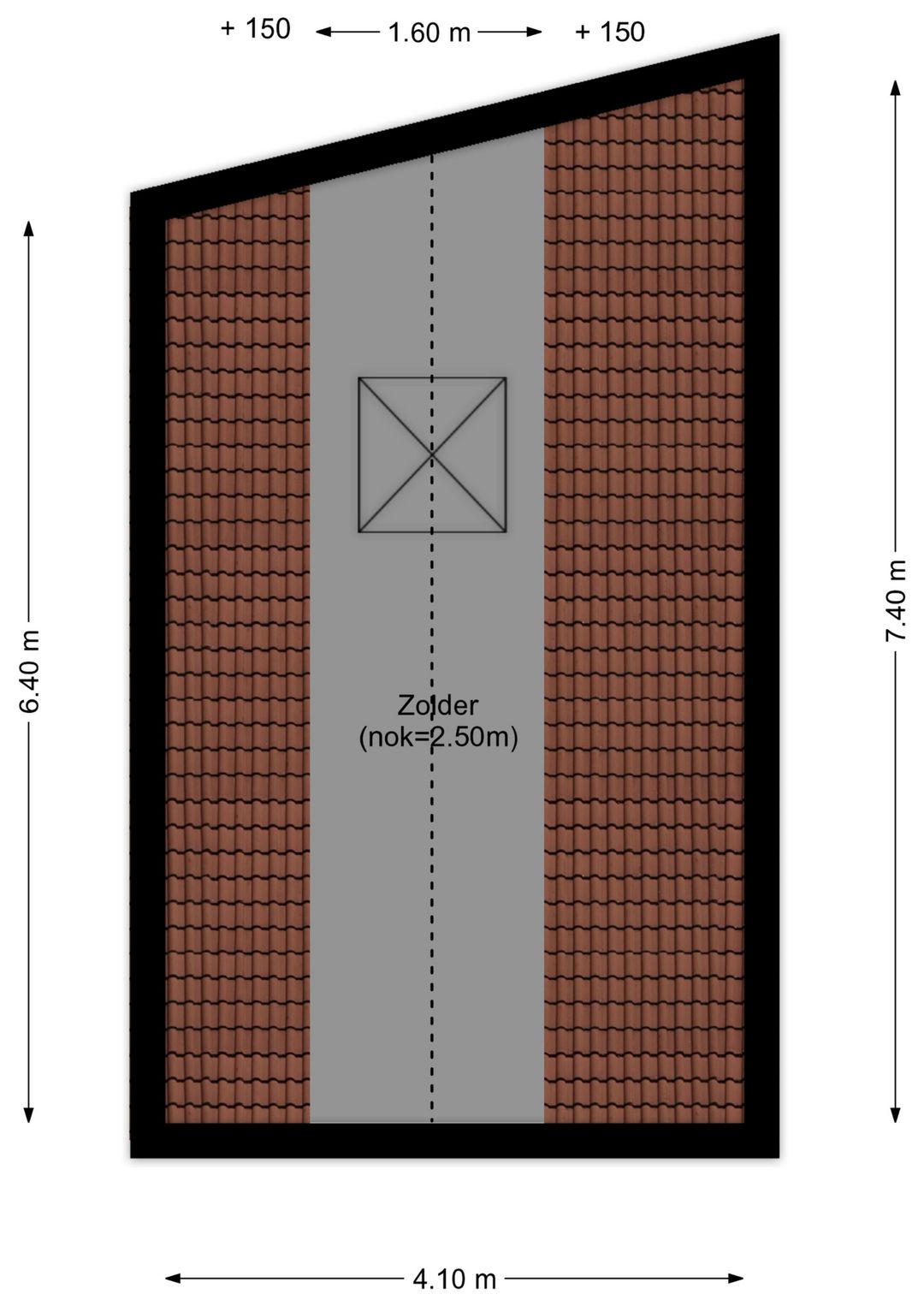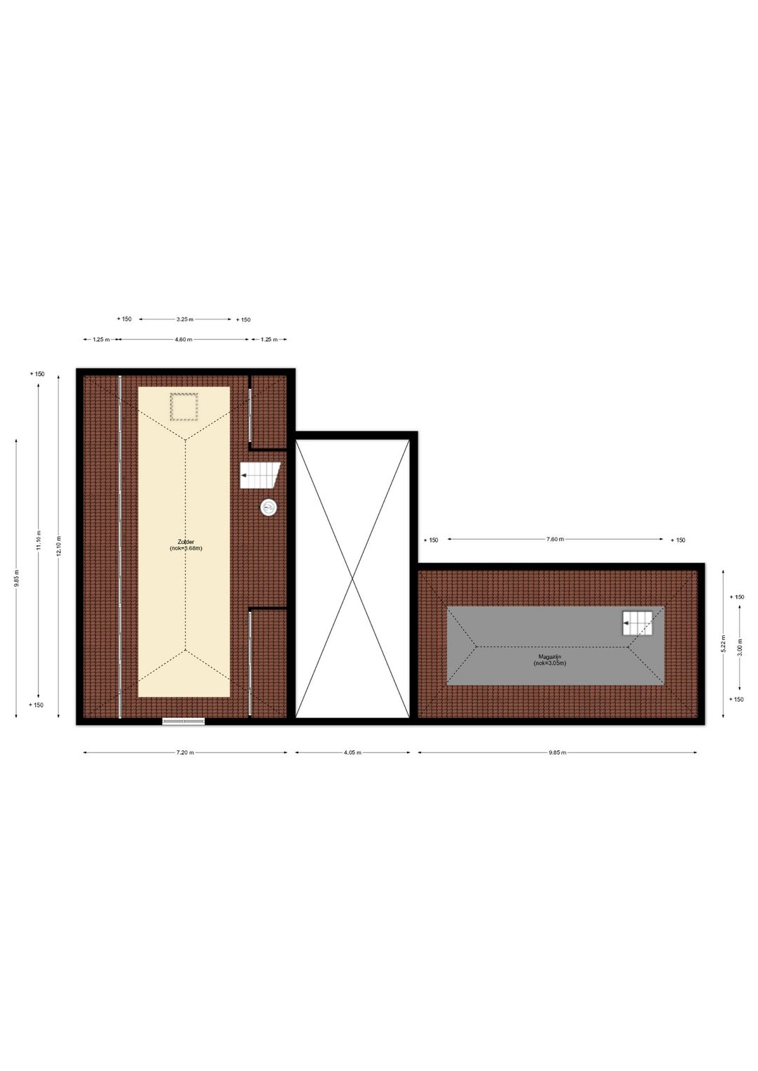- Opslagruimte (zolder / 2e verdieping): 23 m²