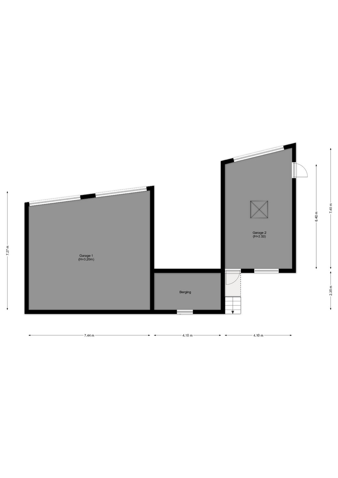 - Twee separate garage-units met een totaaloppervlakte van 86 m²