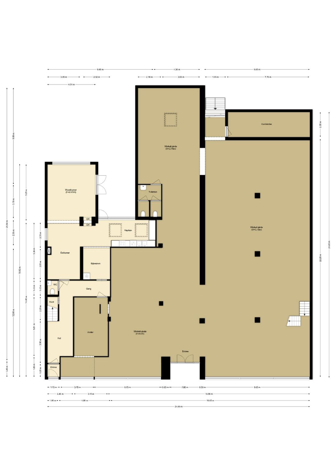 - Winkelruimte: 462 m² met een frontbreedte van 24 meter