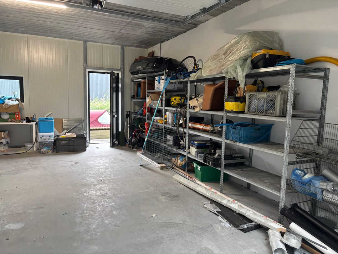 De garagebox is voorzien van o.a. een elektrische overheaddeur en elektra.