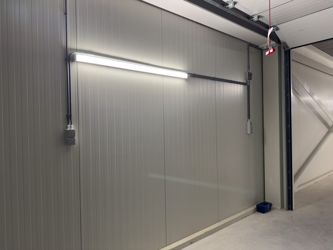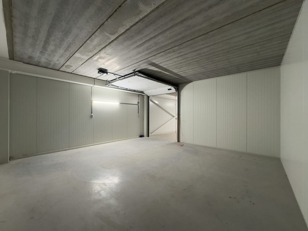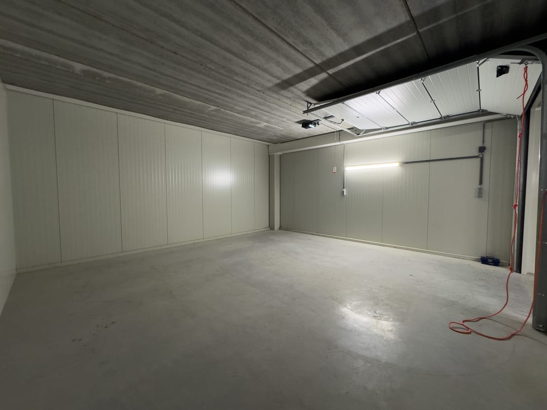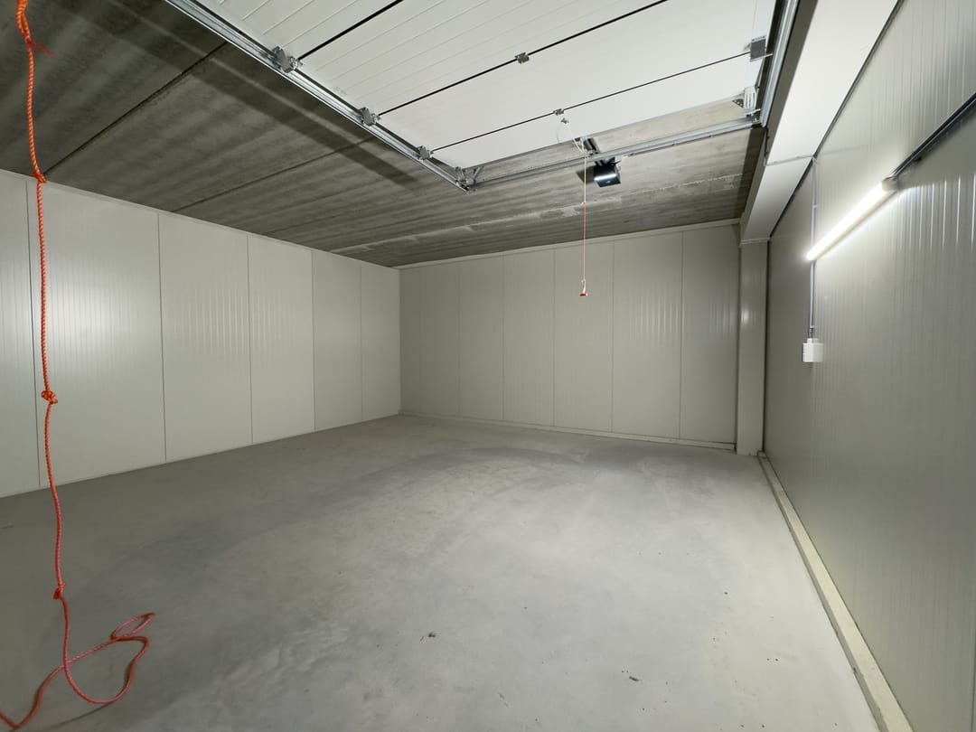 - Voorzien van (elektrische) overheaddeur, verlichting en stroomaansluiting