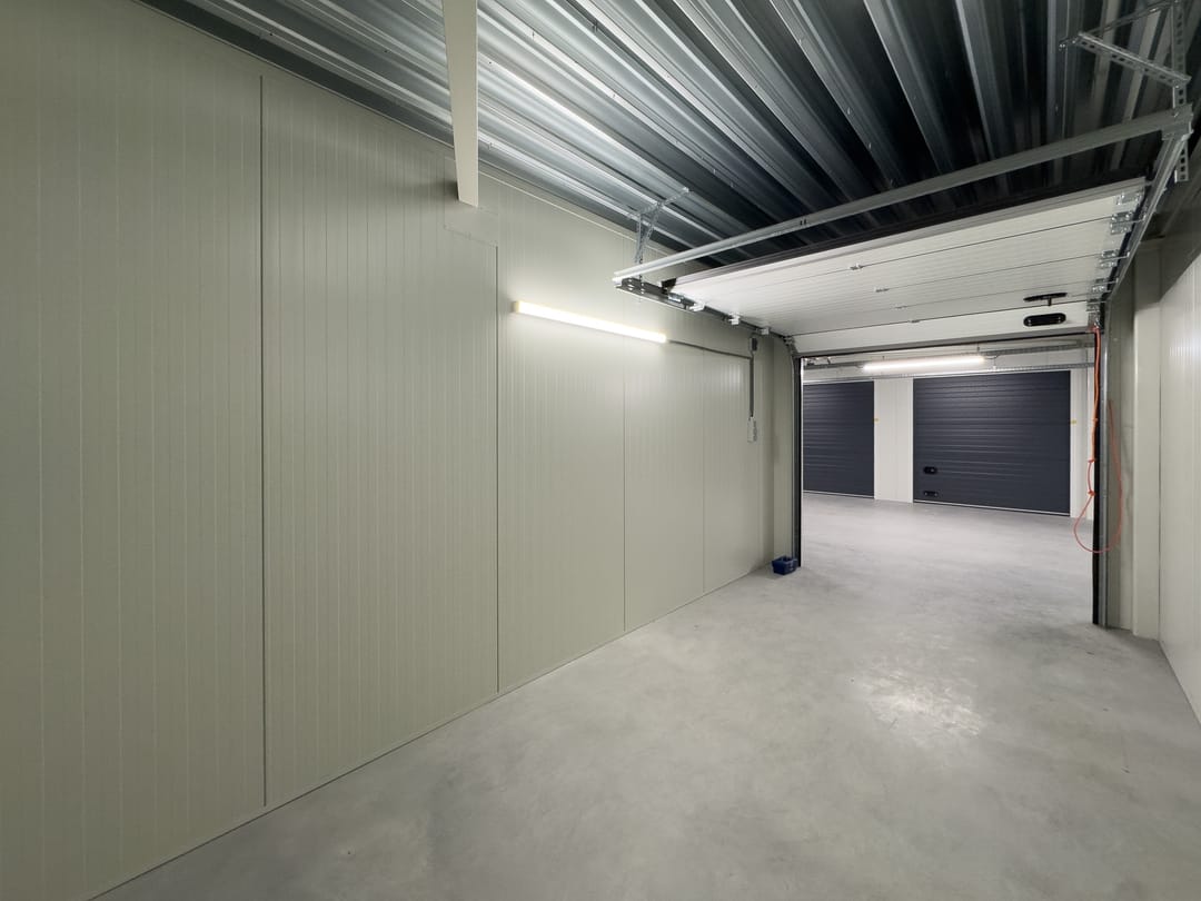 - Voorzien van (elektrische) overheaddeur, verlichting en stroomaansluiting