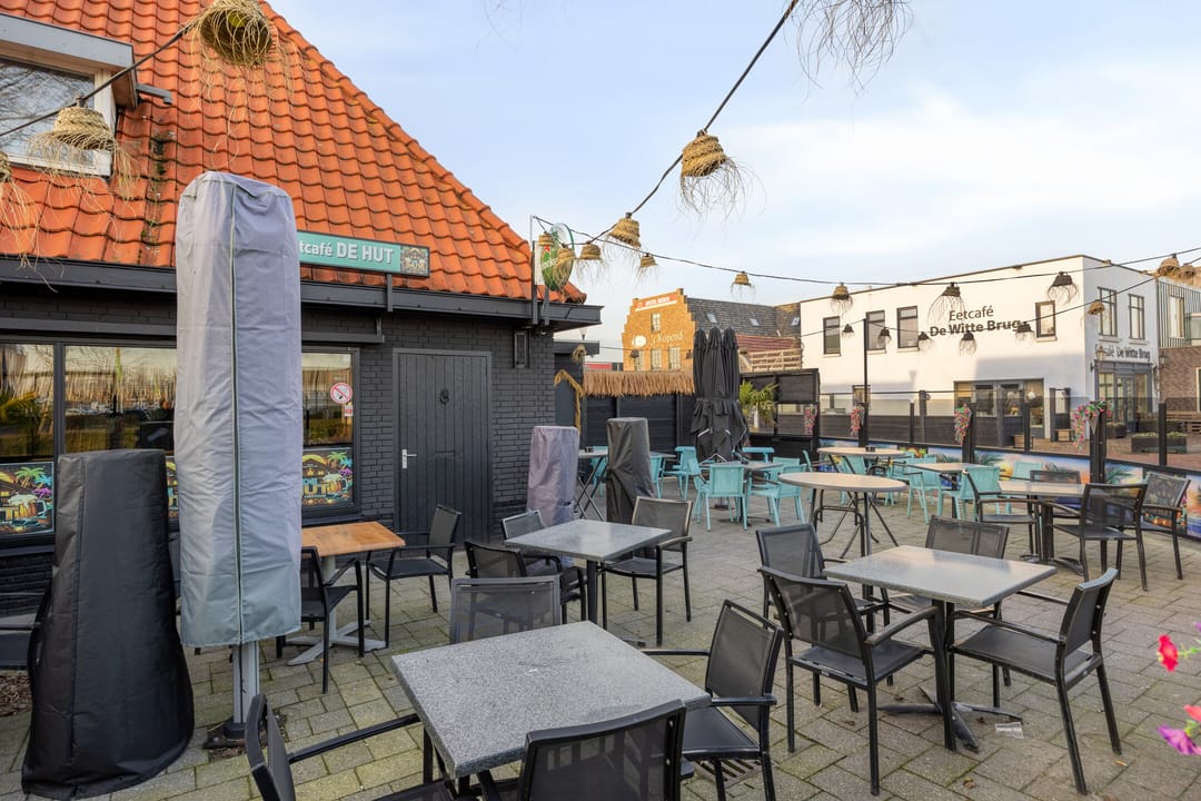 Café met bovenwoning en terras.
