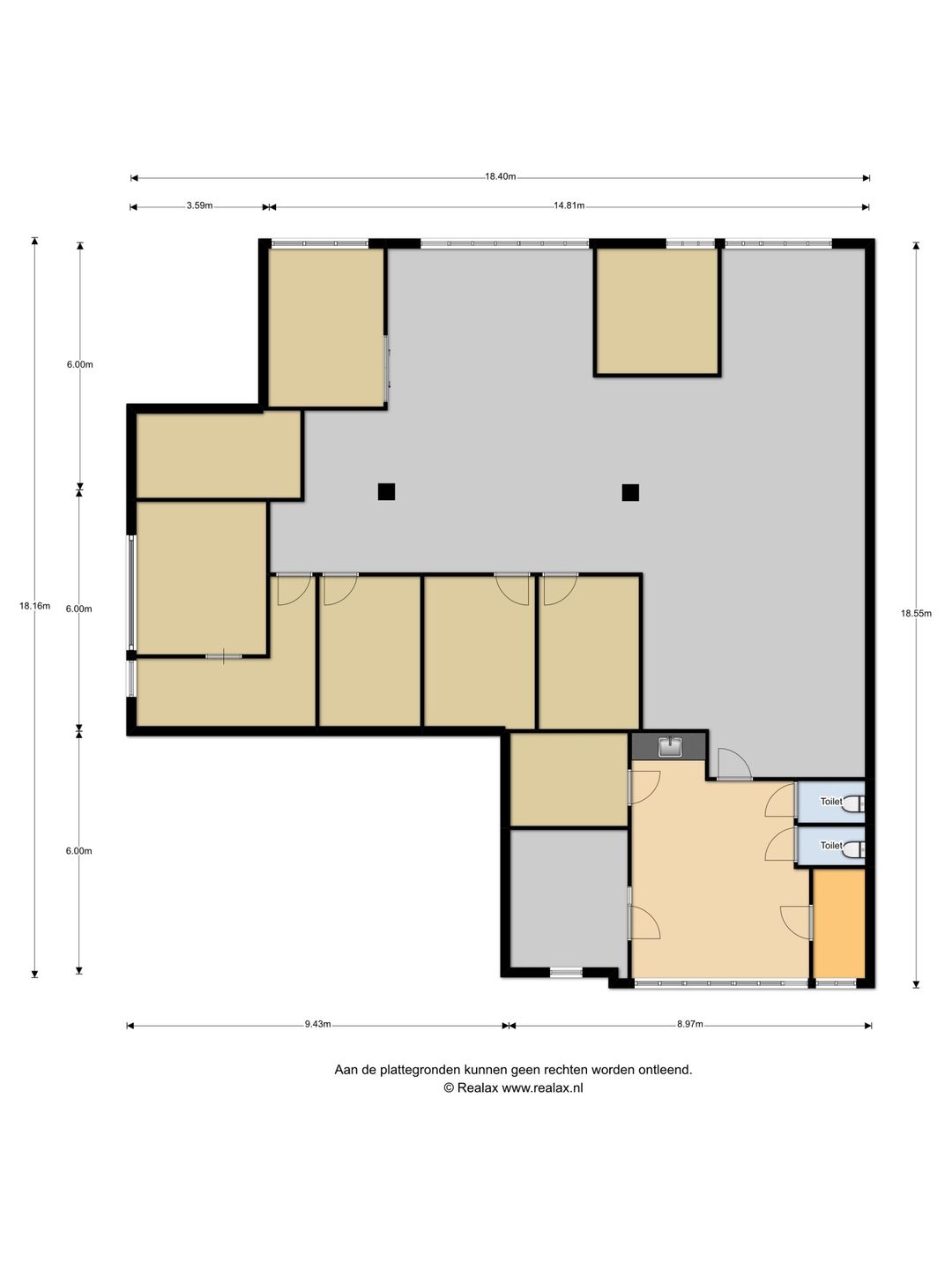 De oppervlakten zijn gemeten door verhurend makelaar uit een kopie bouwtekening. Het opgegeven metrage is derhalve indicatief; er kunnen geen rechten aan worden ontleend noch kan er sprake zijn van enige verrekening achteraf.