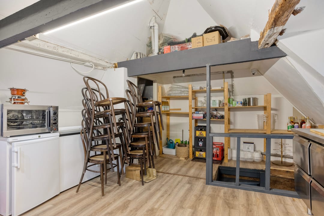 De opslagruimte (Warmoesstraat 902) bevindt zich op de begane grond en is in gebruik als opslag ten behoeve van het café. Hierin bevindt zich tevens een ruime koelcel met vier biertanks van elk 500 liter (in eigendom). Vanuit deze tanks lopen ondergrondse leidingen niet alleen naar de bar, maar ook naar de pui van het café, waardoor bij hoogtijdagen zoals kermis, lappendag en diverse festivals gebruik kan worden gemaakt van zogenoemde raamverkoop.