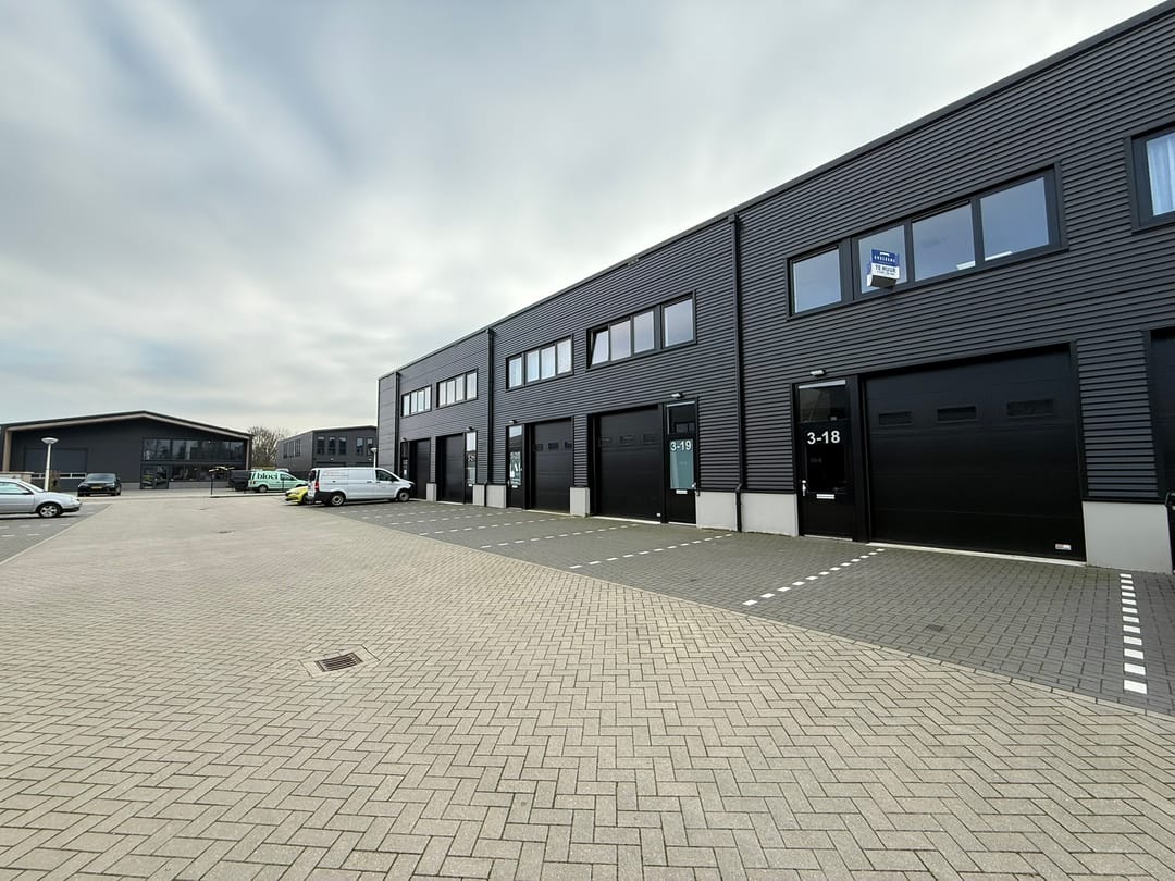• Elektrisch bedienbare overheaddeur (3,0 × 3,4 m.) plus aparte loopdeur
