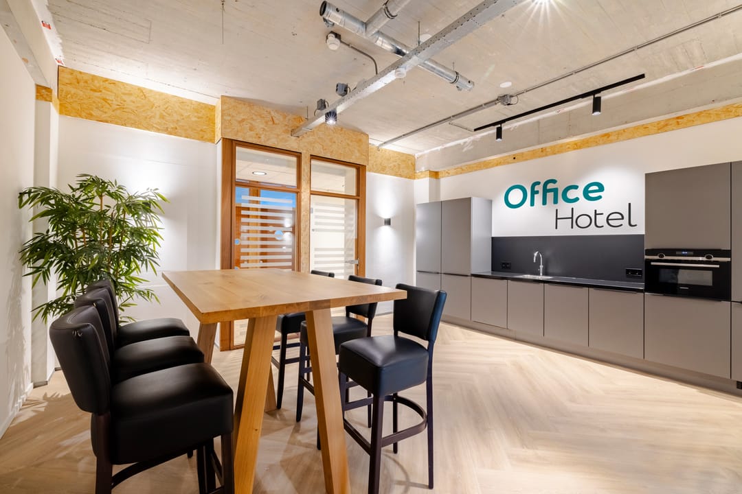 Het kenmerkende gele pand waar Office Hotel is gevestigd, Ankestyn, is een bedrijfsverzamelgebouw. Dit brengt een fijne ondernemerssfeer met zich mee én nuttige netwerkkansen.
