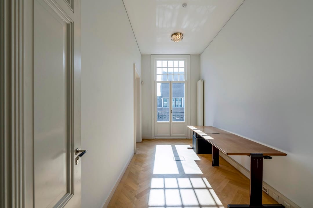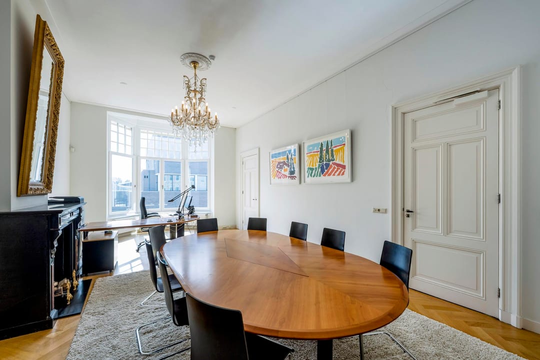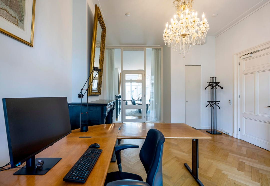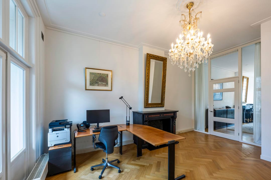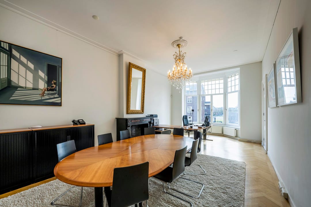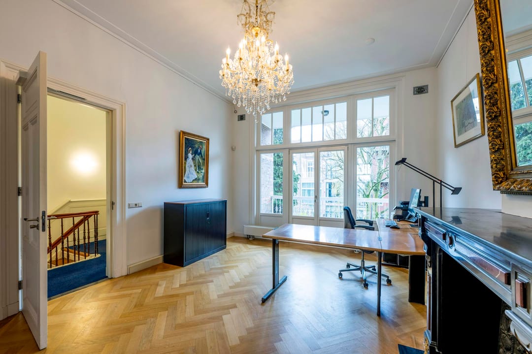 De kantoorruimte beschikt over een riante ontvangsthal. Het mooie trapportaal leidt naar de verschillende verdiepingen (per lift). De werkkamers hebben mooie uitzichten over het Museumplein alsmede de royale tuin.