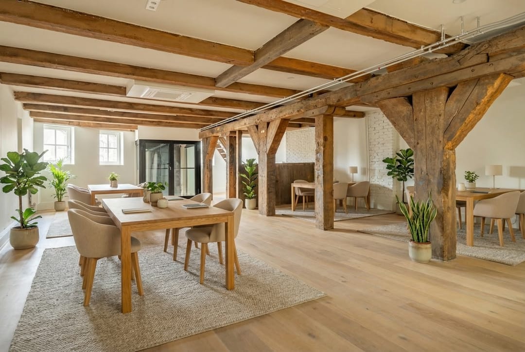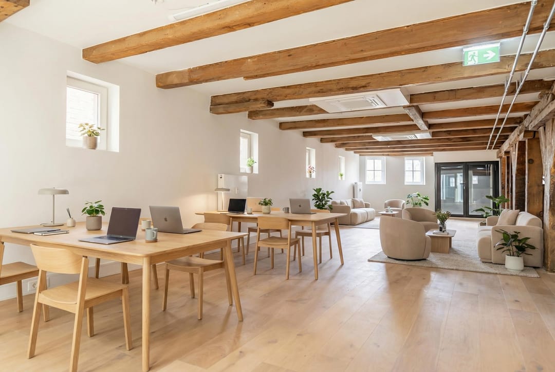 Een kantoorruimte op de derde verdieping van het voormalige pakhuis “Bontekoe”.