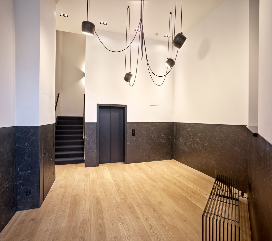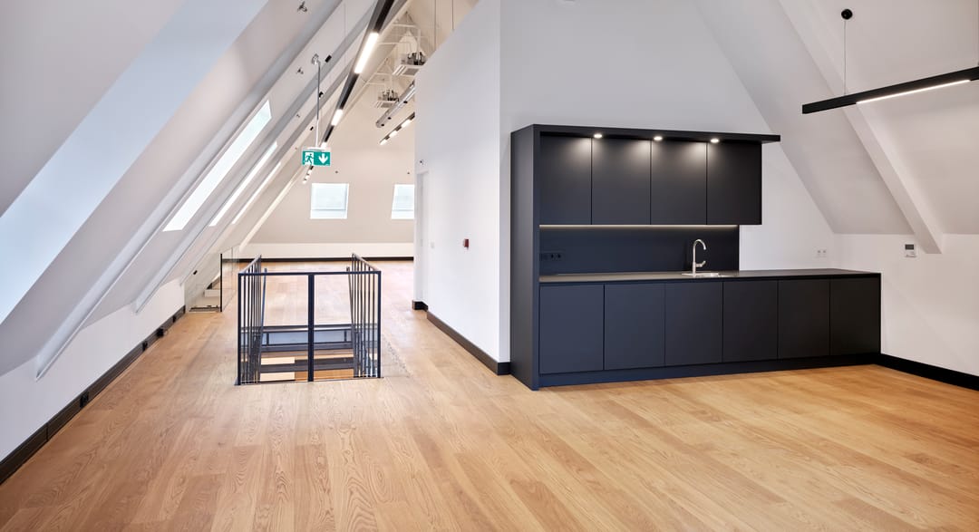 - Airconditioning, mechanische ventilatie, topkoeling, inbouwarmaturen, liften, te openen ramen, kabelgoten, systeemplafond, toilet, pantry, verwarming en kamerindeling