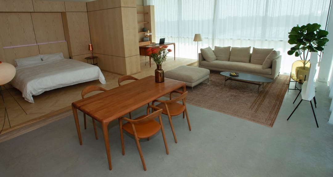 – Gemeubileerd (incl. vergadertafel, stoelen, bank, bureau, bed e.d.)