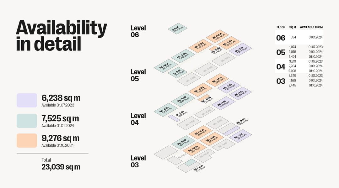 In total: 23,039 sq m l.f.a. office space: