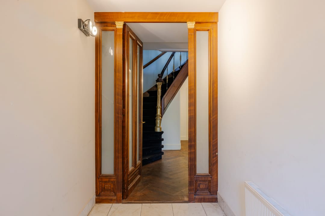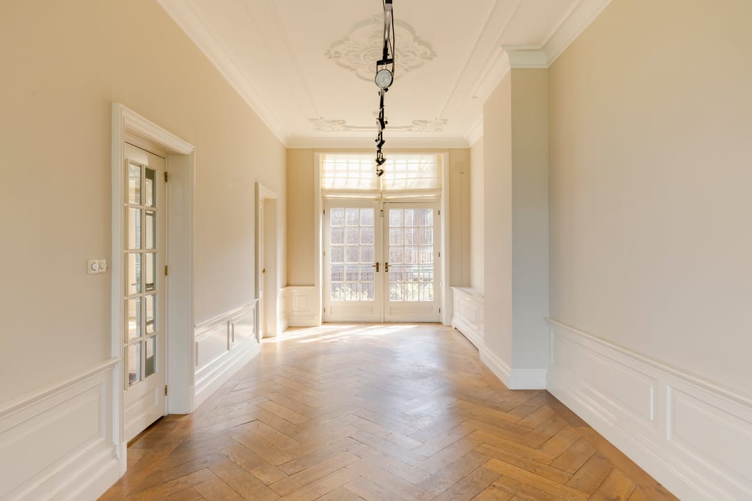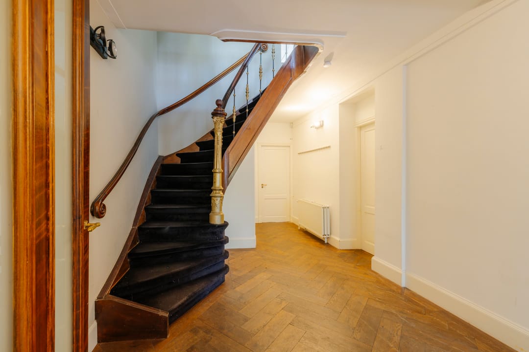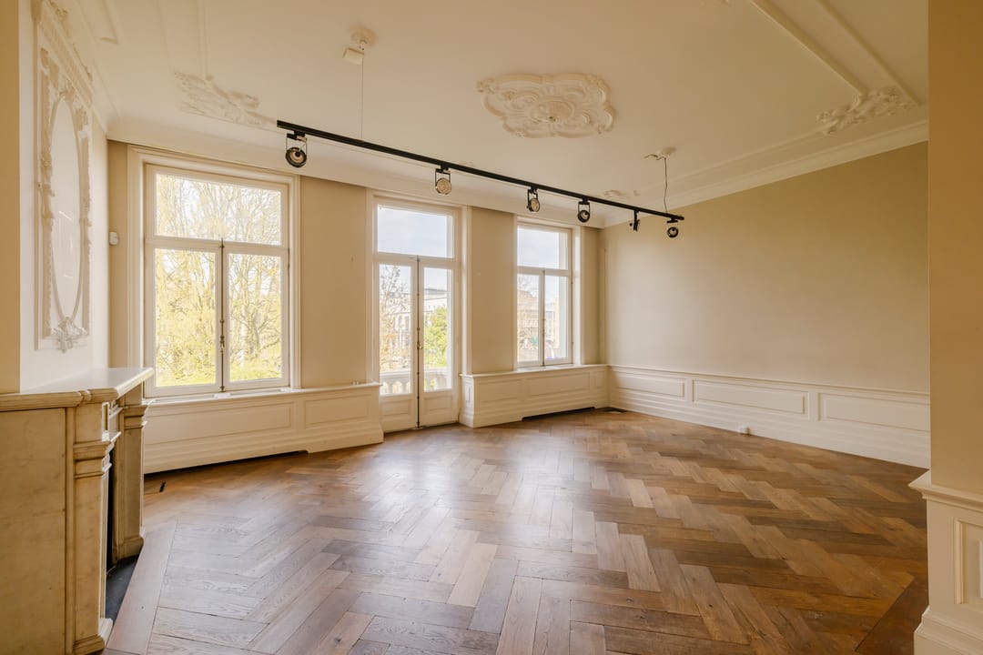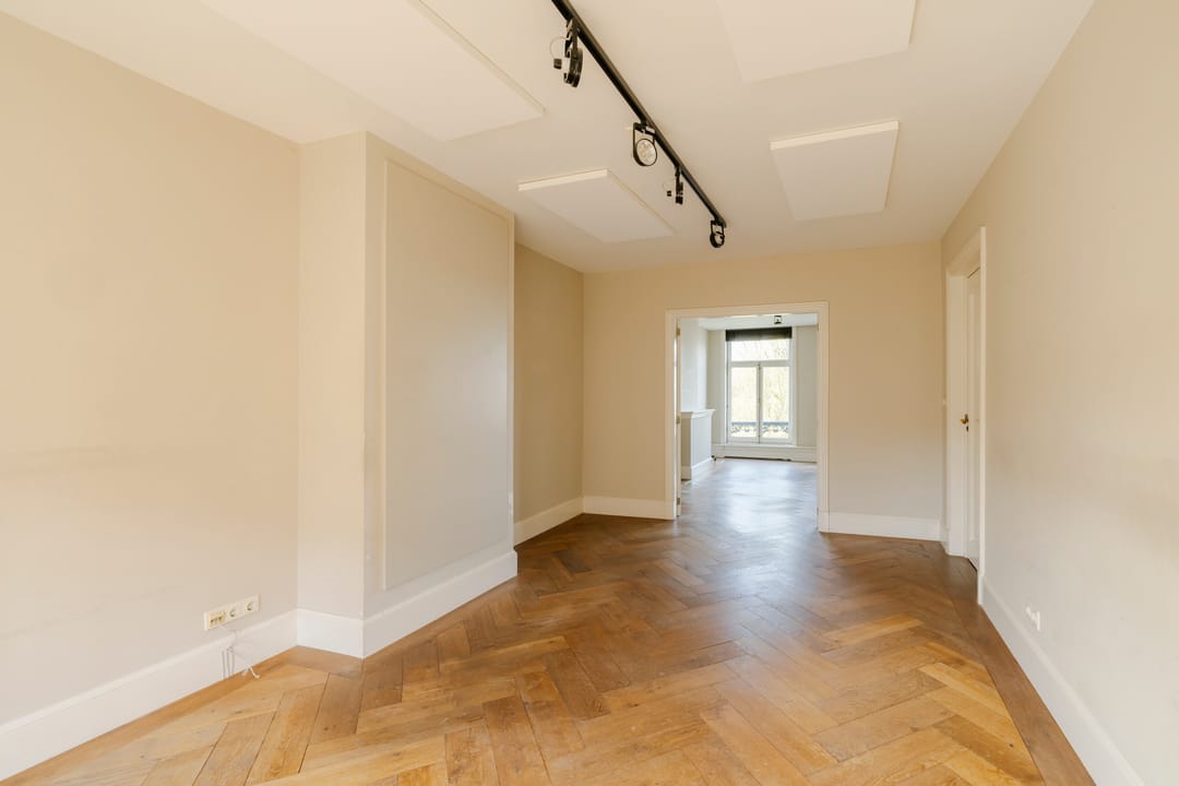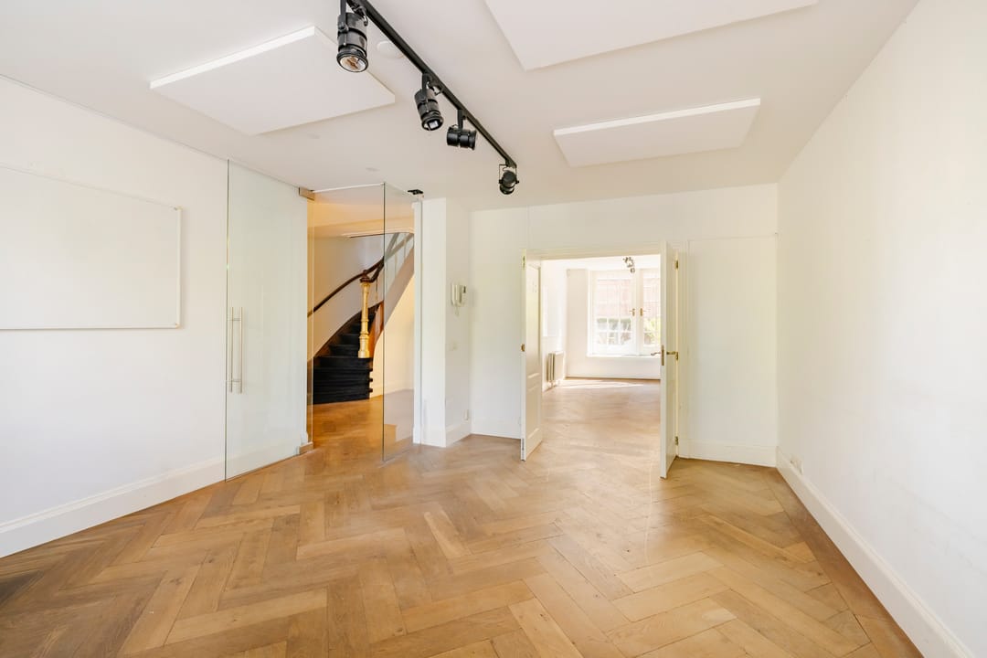 Het pand is verdeeld over vijf volwaardige bouwlagen en kenmerkt zich door een centrale ontsluiting via het monumentale trappenhuis. De eerste en de tweede etage beschikken over hoge plafonds en originele details, waaronder een marmeren schouw.