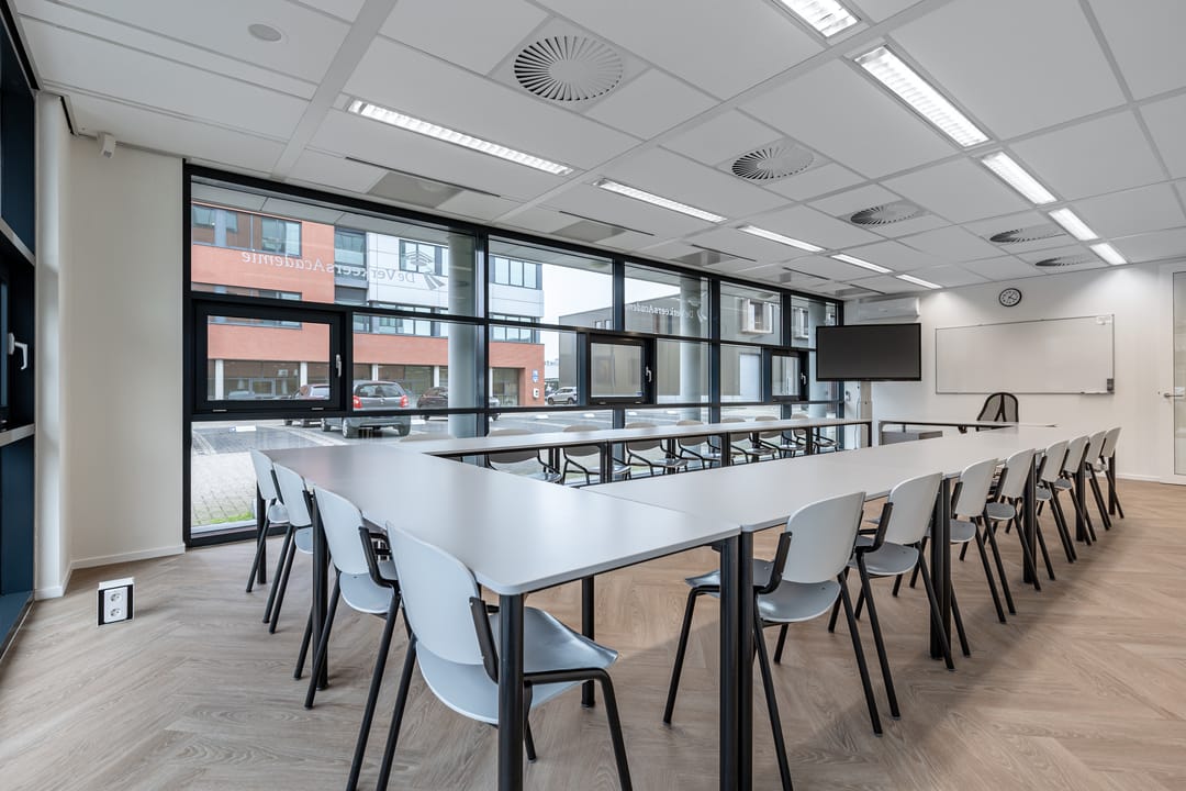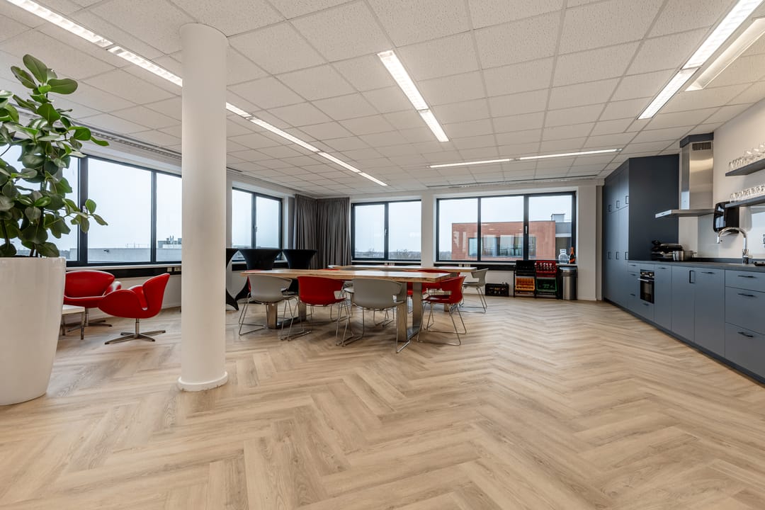 - Mechanische ventilatie, topkoeling, inbouwarmaturen, te openen ramen, systeemplafond, toilet, pantry en verwarming