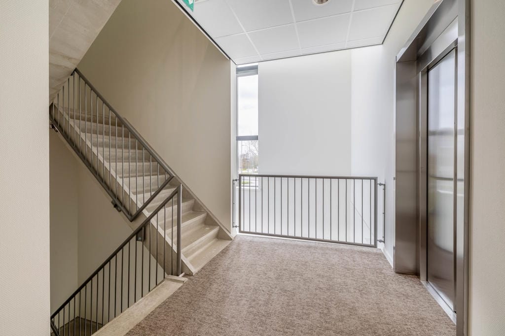 Uw medewerkers en bezoekers worden verwelkomd via een stijlvolle, representatieve entree. De moderne lift en het verzorgde trappenhuis brengen u naar de tweede verdieping. Eenmaal boven komt u via de hal op de galerij met daarin een fraaie daktuin.